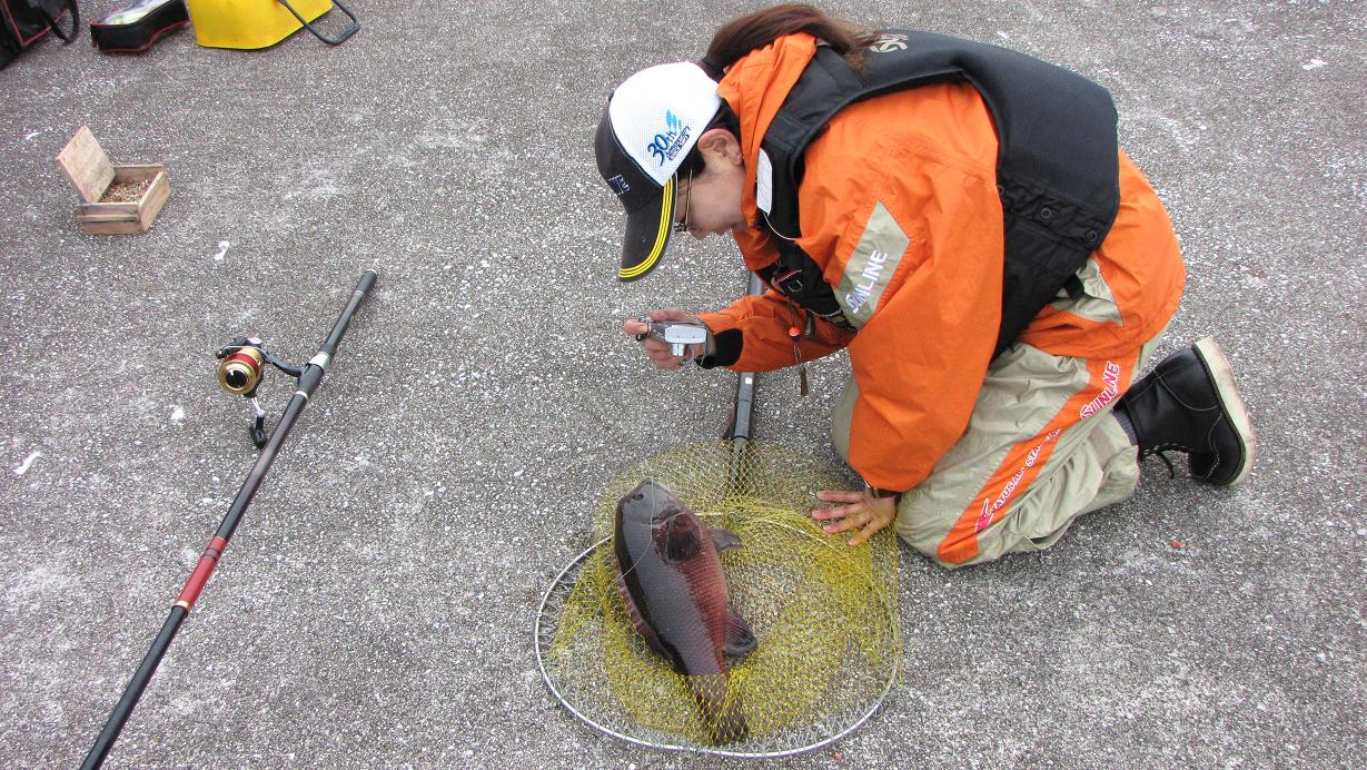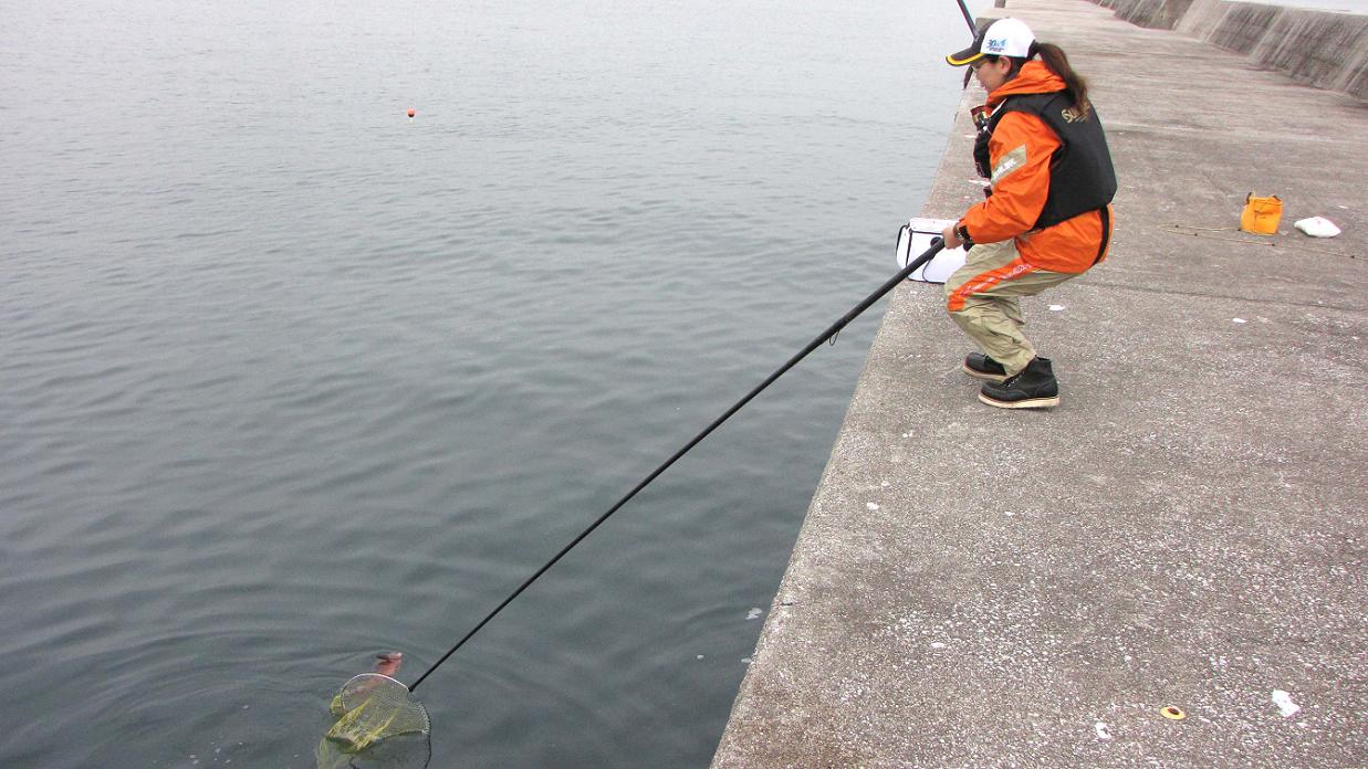 使った仕掛けはGチューン遠征4号・10号ハリス・16号のハリです。女性が扱うには、パワーSPフカセの5号6号は強すぎるので、このくらいの竿がベストだと思っています。