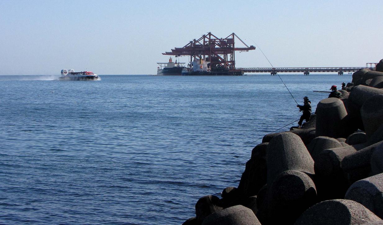 新日鐵大分のシーバースに30万トン級のタンカー・ホバークラフトの入港