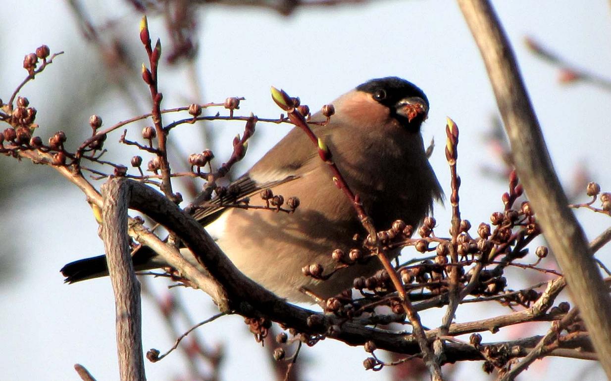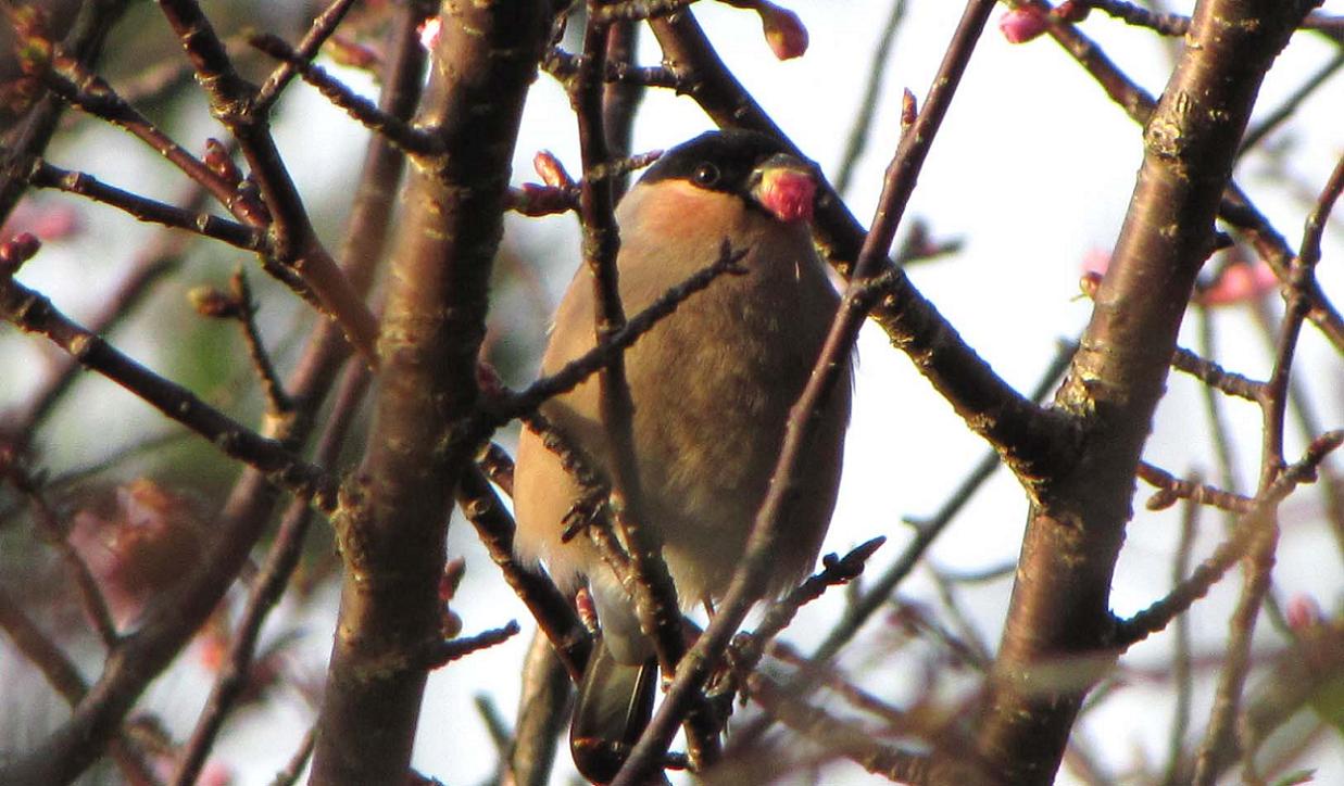 桜の蕾も良く食べます。色んな木の実や芽を食べているみたいです