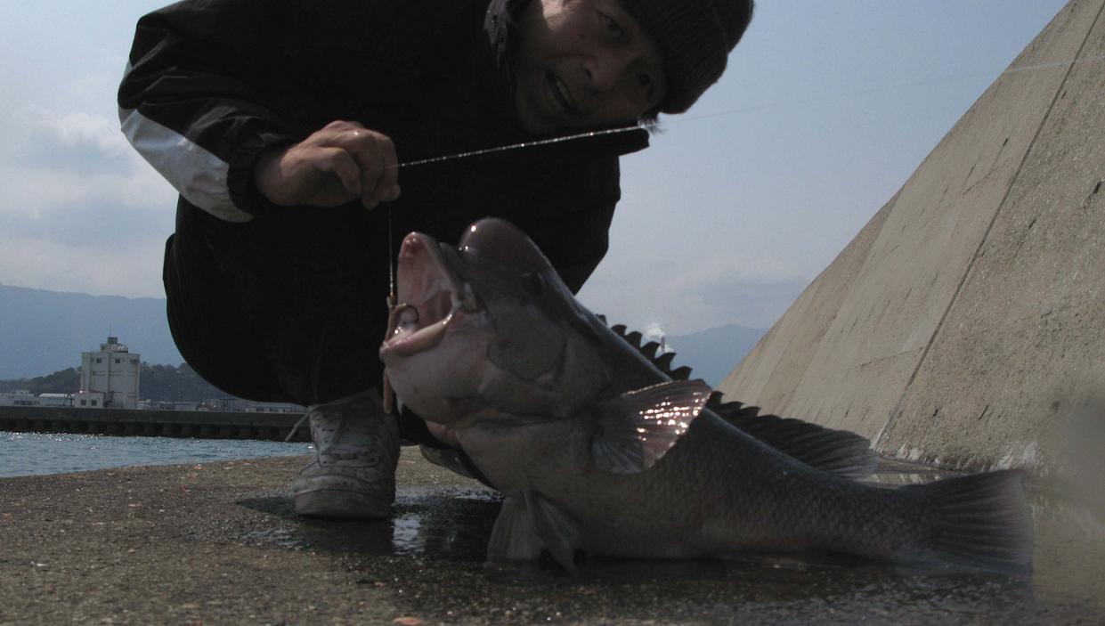 川之江港のカンダイは釣り荒れていないので、とても素直に喰ってきました。ゆっくりと落ち着いてサシエを吸い込み、ゆっくりと泳ぎ去るアタリでした。