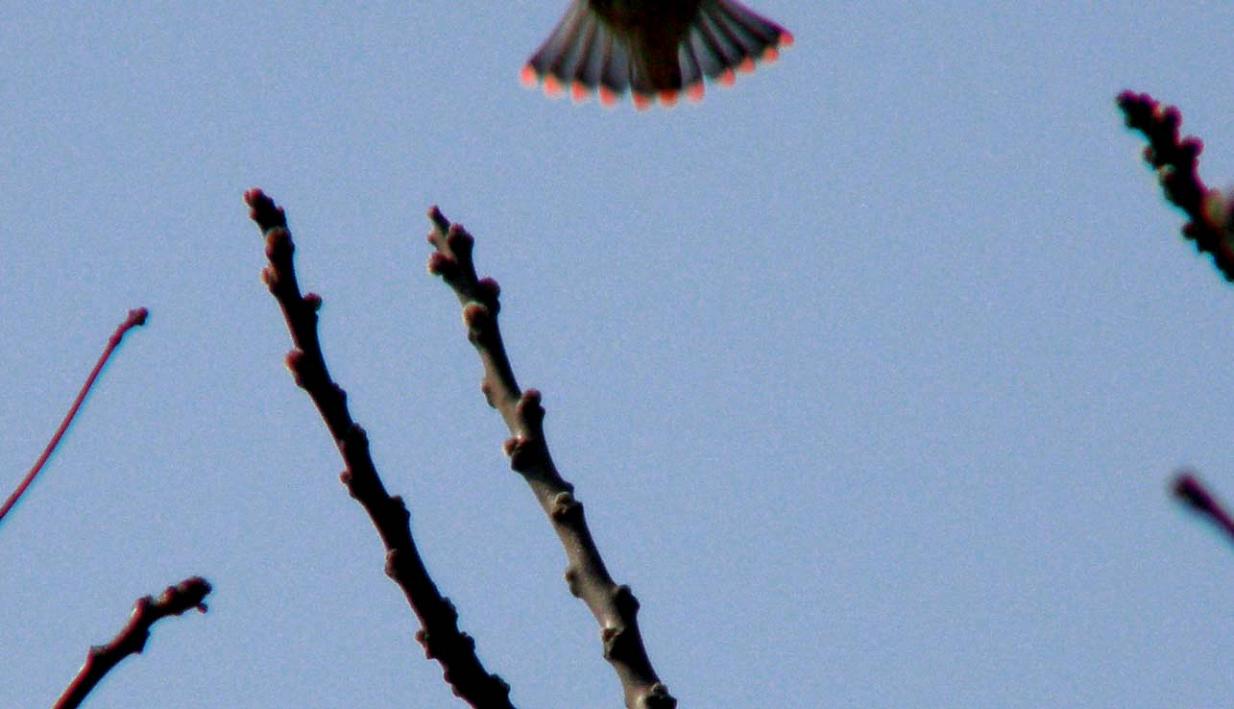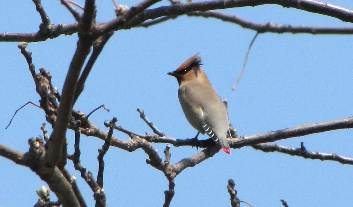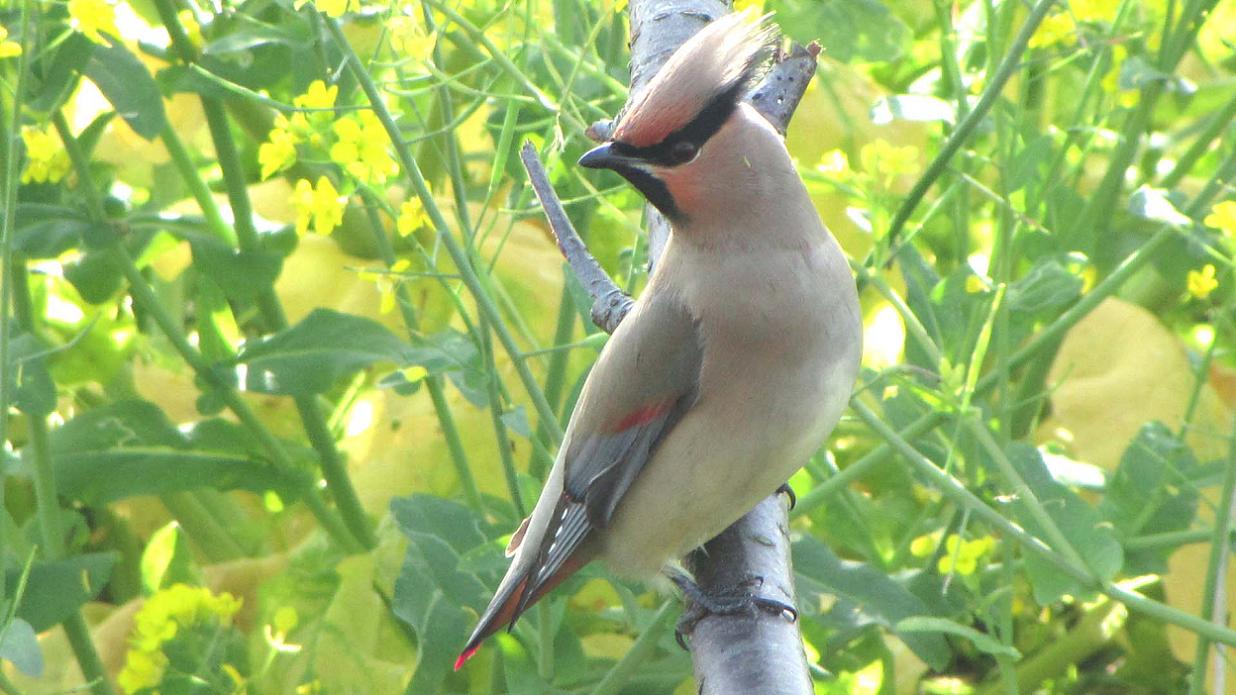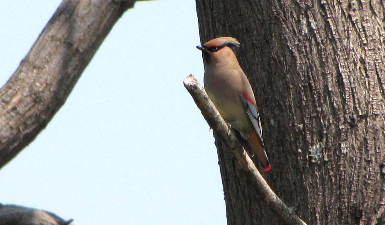 尻尾の先端が赤いのが特徴、ヒレンジャクです