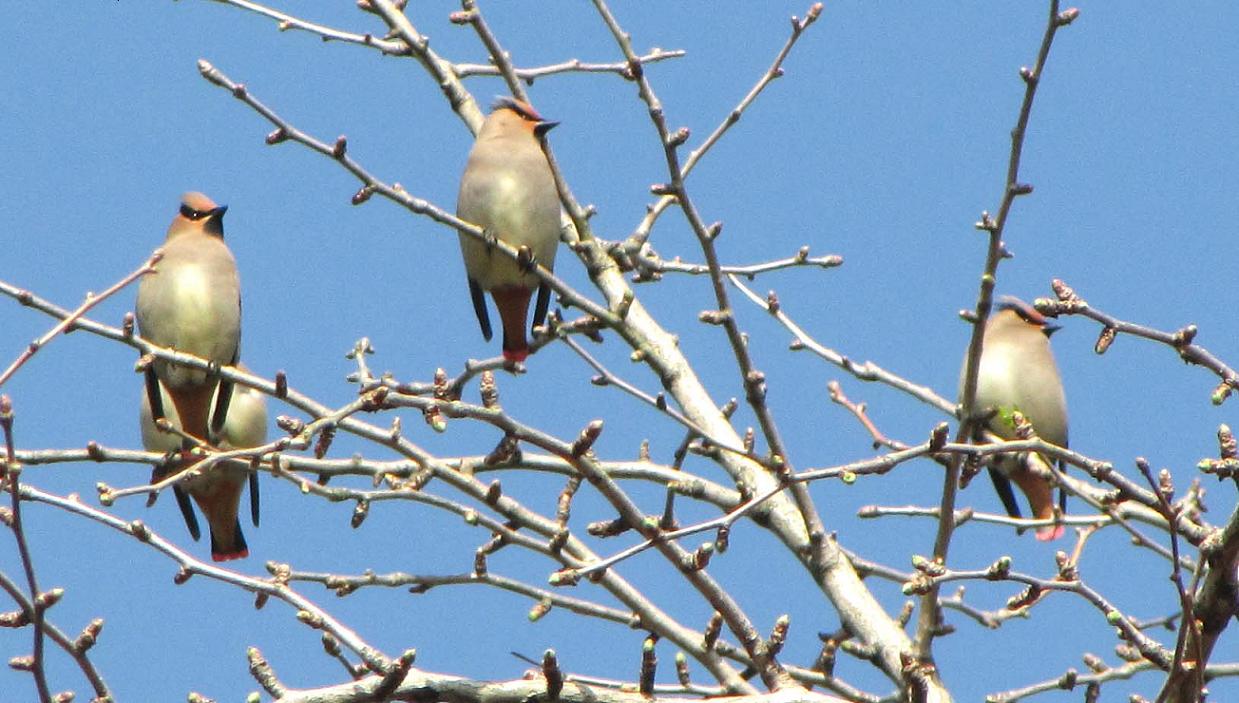今、ヒレンジャクが留まっています。北国へ帰る途中でしょう。