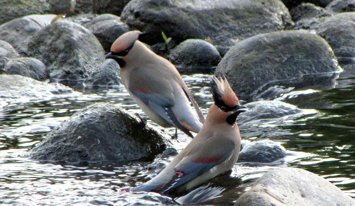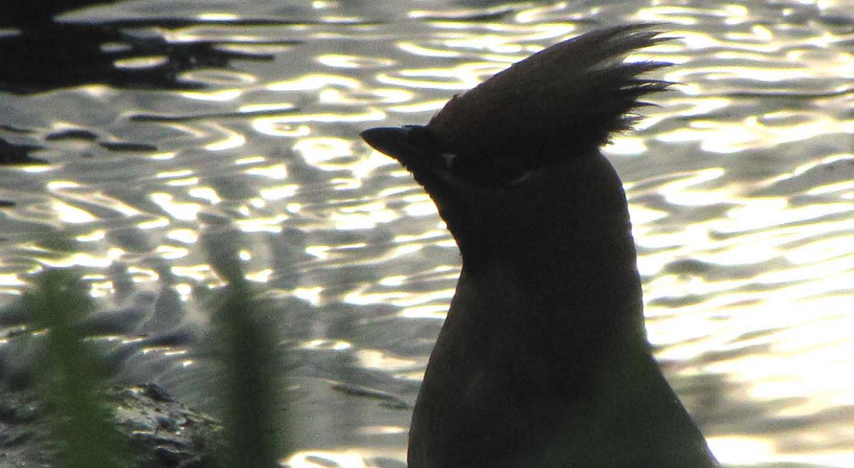 冠羽が特徴。朝日の逆光での水浴びは、約3mの至近距離