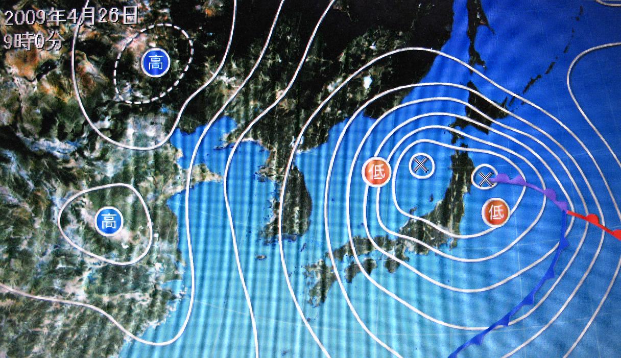 ・・・実況天気図はコピペ出来るのに予想天気図は上手くいかない。醜い写真ですが勘弁してください。