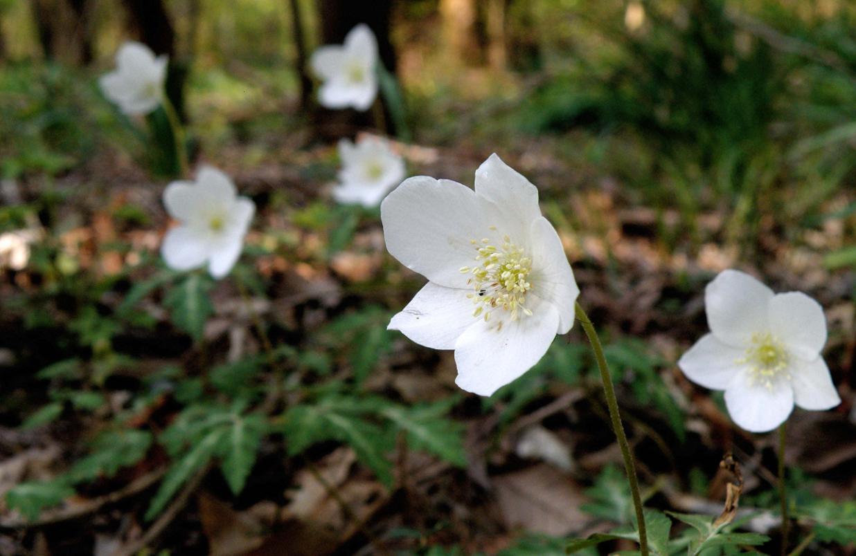 イチリンソウの綺麗な白が群生していたり、ポツンと咲いていたり