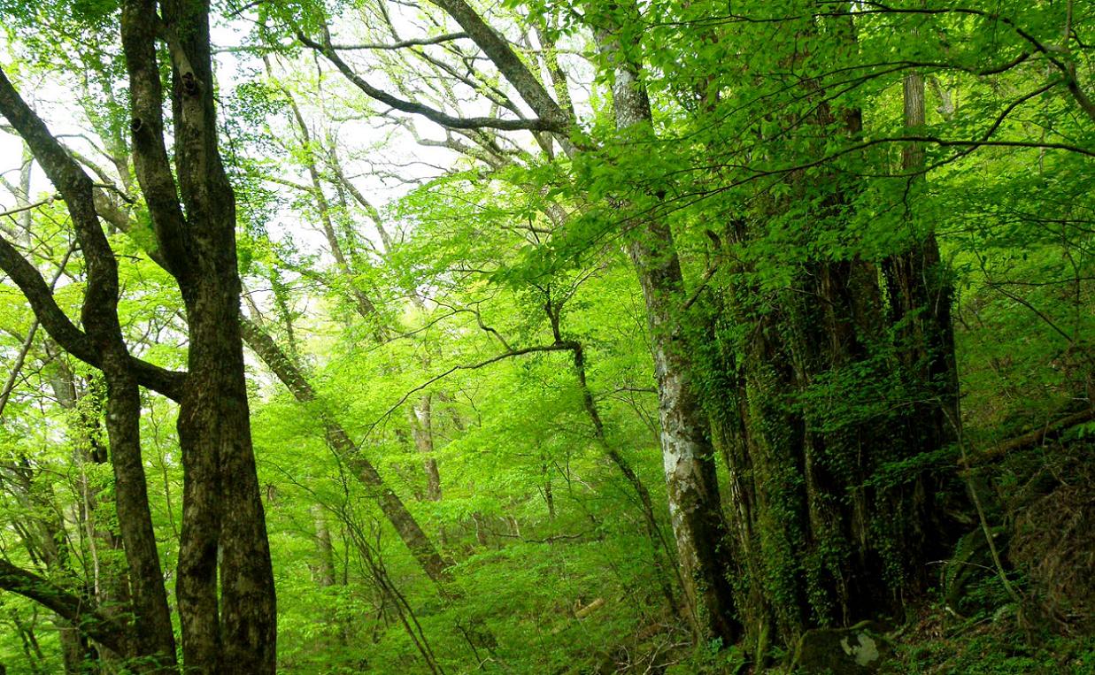 原生林の大木と若芽のコントラストは、一見の価値があります