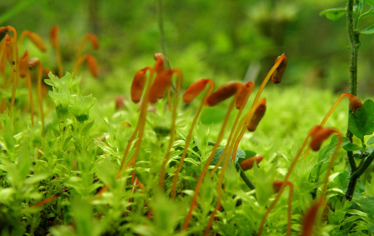 大木の下の苔には胞子が伸びていました。苔の大岩がゴロゴロ