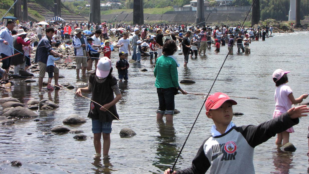 今年で65回目となる大野川ドンコ釣り大会は、お昼の時点で参加者数が7500人と大賑わい。昼過ぎまでの取材で最後まで居ませんでしたが、かなり面白く楽しいイベントでした。