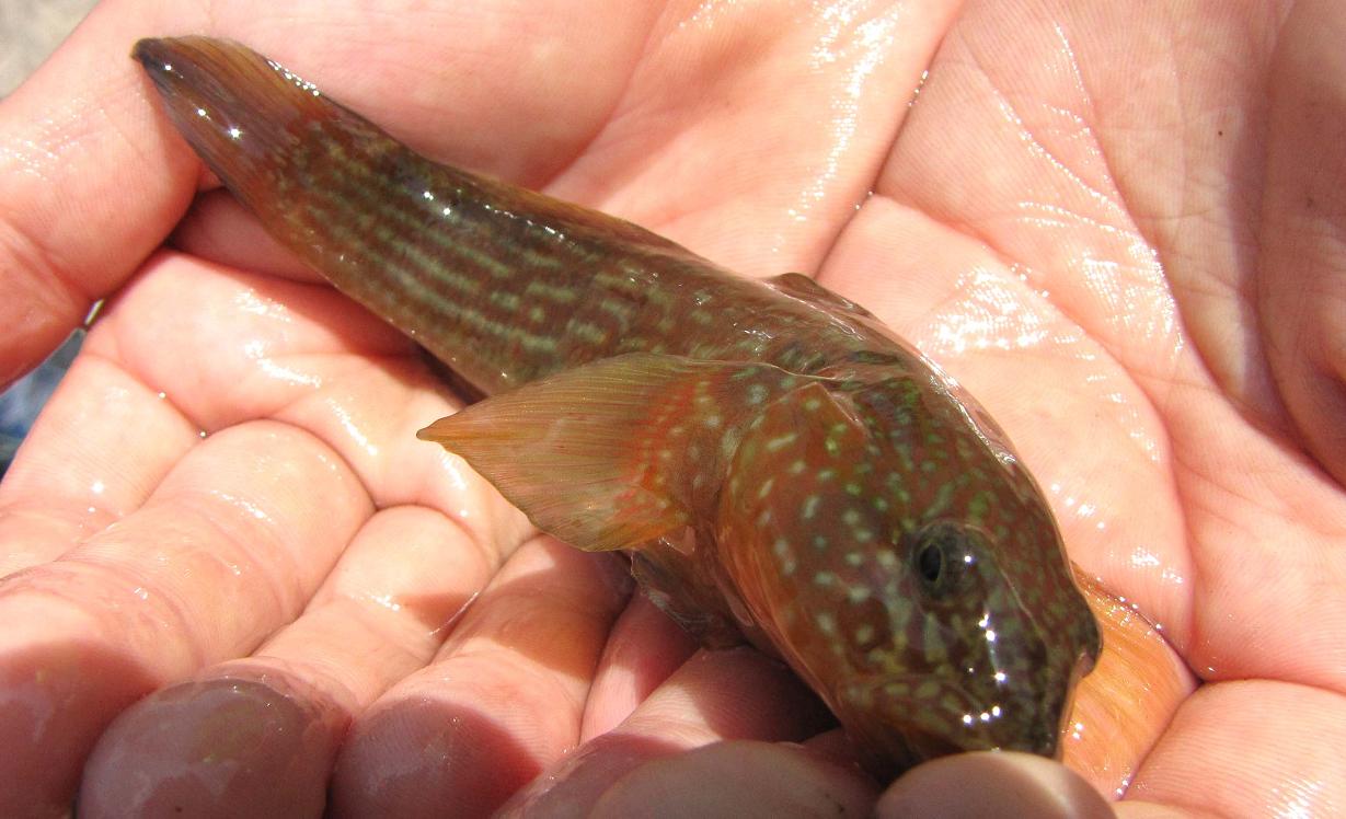 釣れたドンコです。石の間に上手くエサを送り込むと居たら喰います