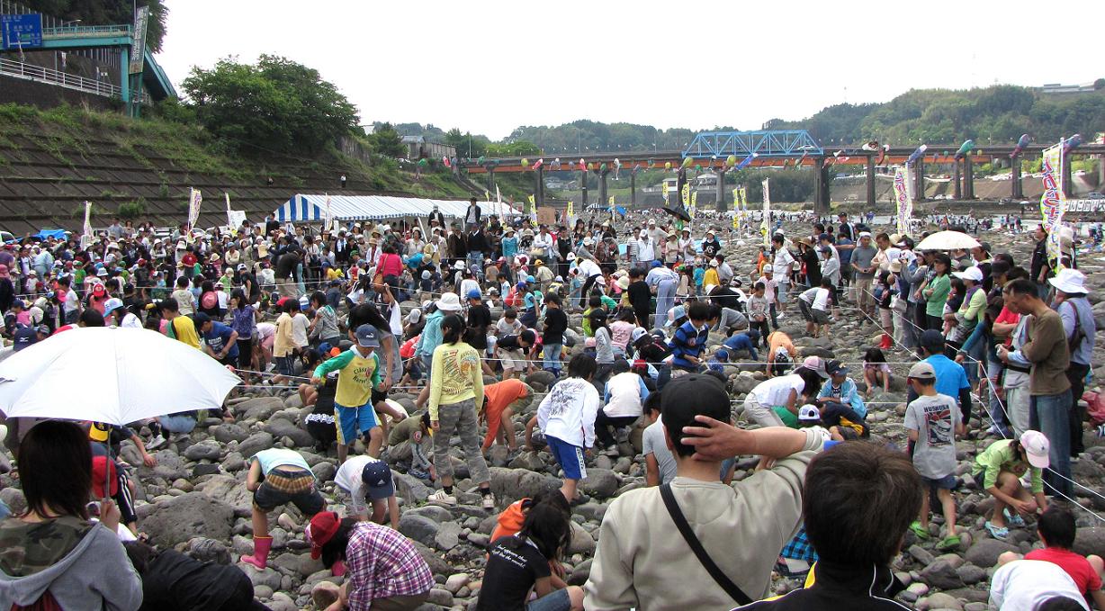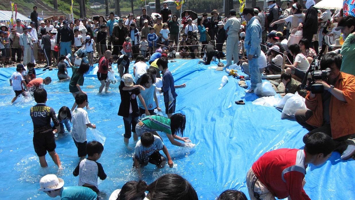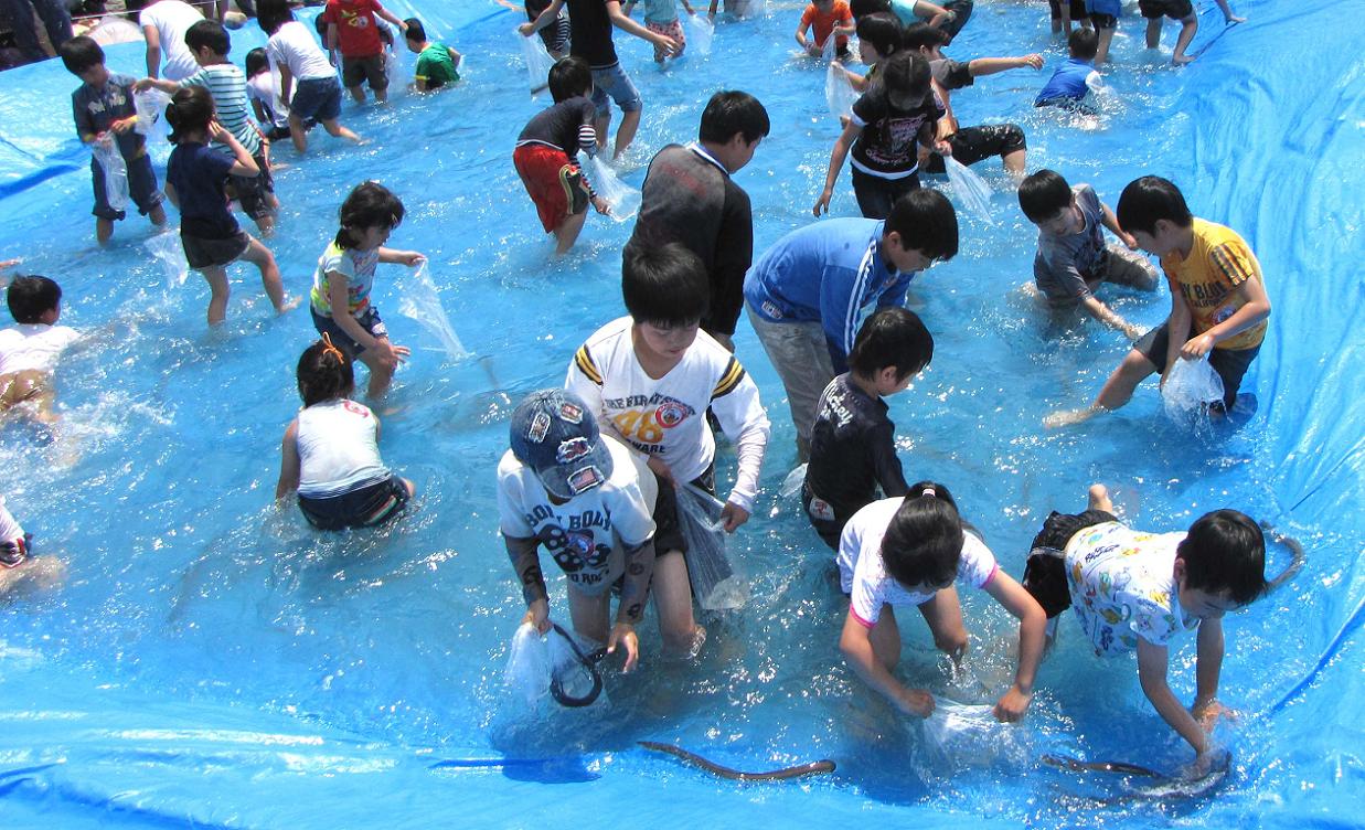 小学生対象、200円でウナギの掴み捕り。制限時間内で一人5匹までOK