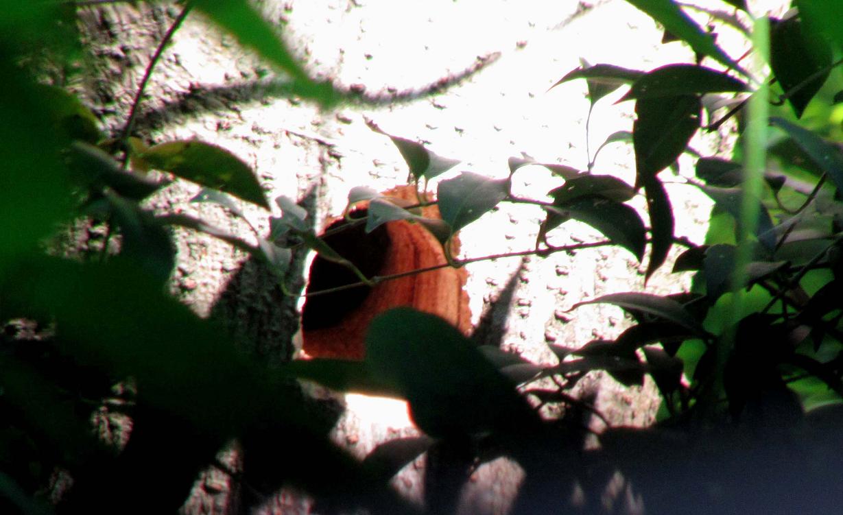 巣穴の下には沢山の木屑、作っている段階から落ち葉で隠してあげました
