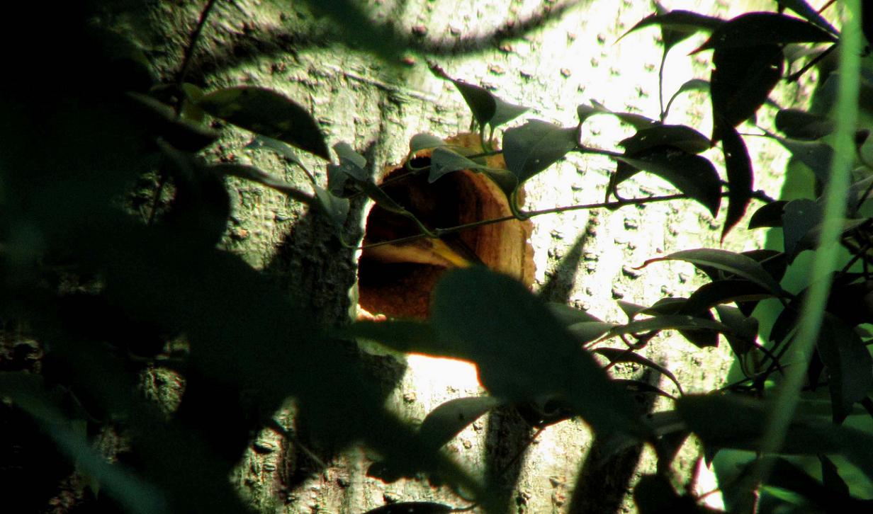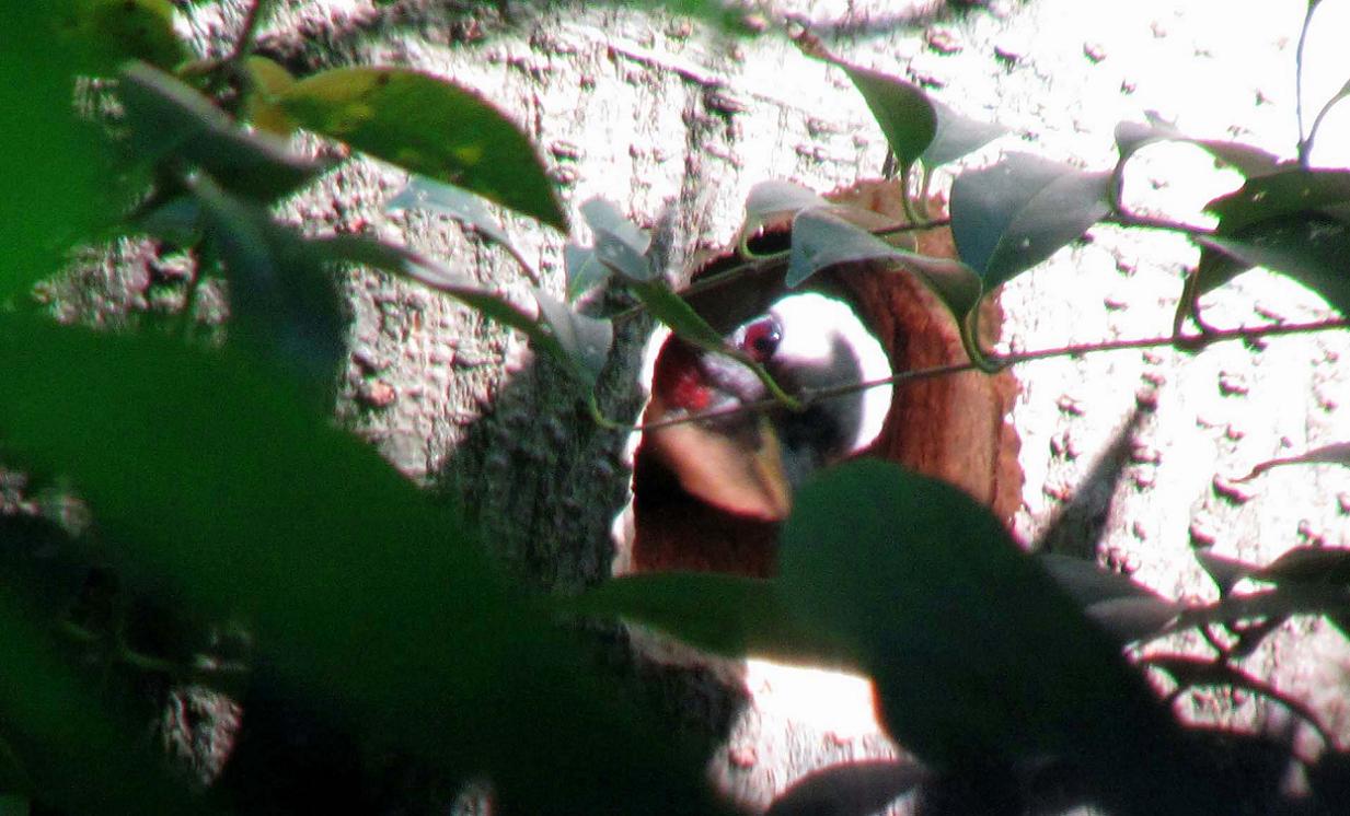 巣の傍に車を止めて待つ事1時間。近くの森からアオゲラのドラミングが聞こえ始めました。それに呼応するかの様に、巣穴から顔を出したメスのアオゲラちゃん。思った通りに抱卵しており、なんだかとても嬉しいです。