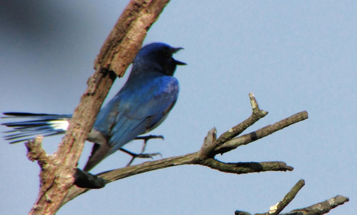 このオオルリは朝はこの木が多く、その後は樹間で鳴く事が多いです。