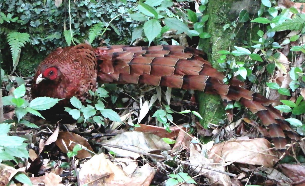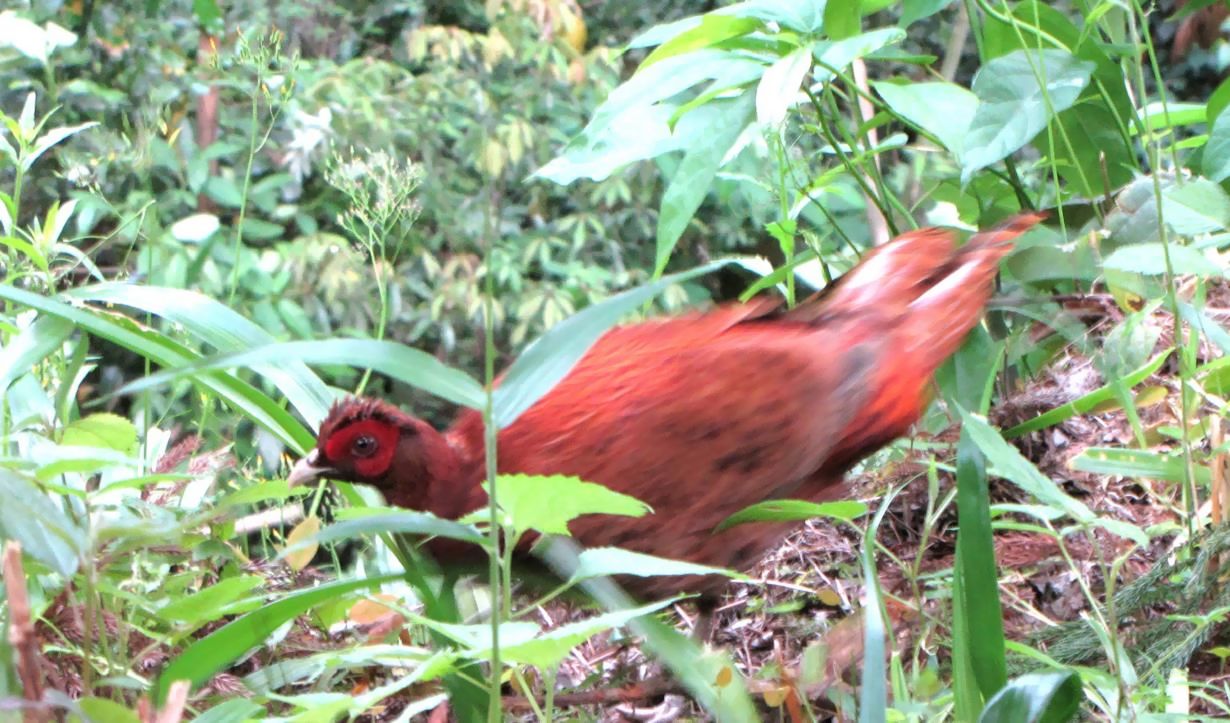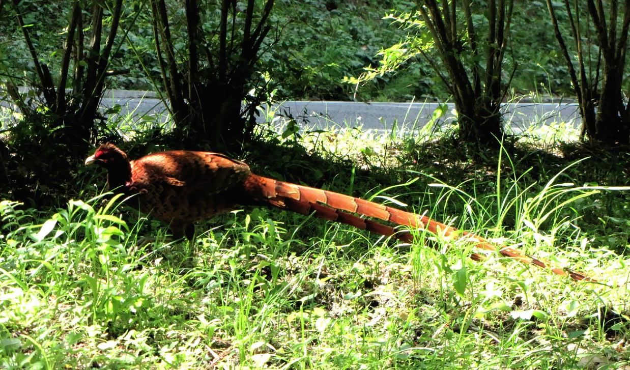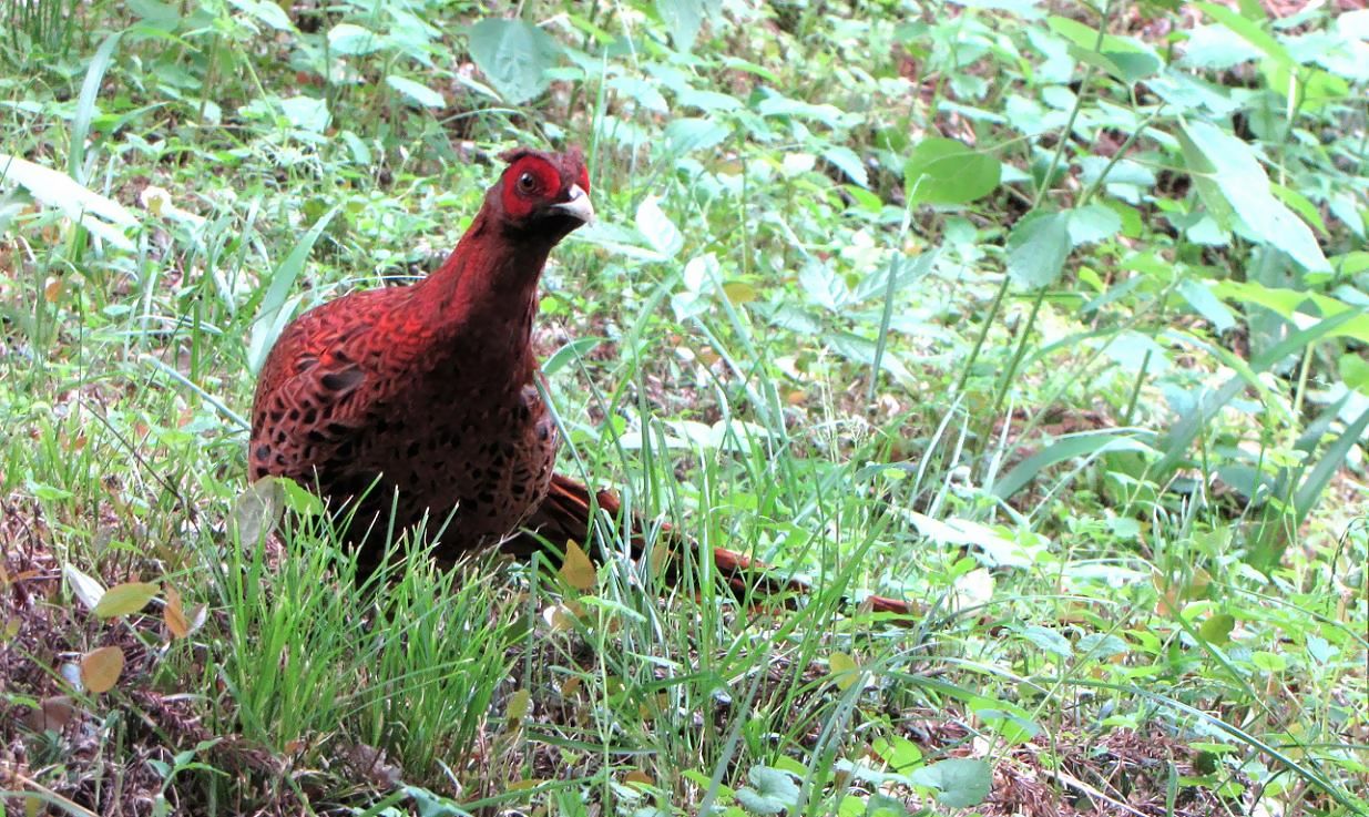 クククククックウクウクウ・・・と鳴いては若い葉っぱを食べて歩いています。ちゃんと「喰う喰う喰う」と言いながら葉っぱを食べるところなど、お行儀の良いヤマドリちゃんです。