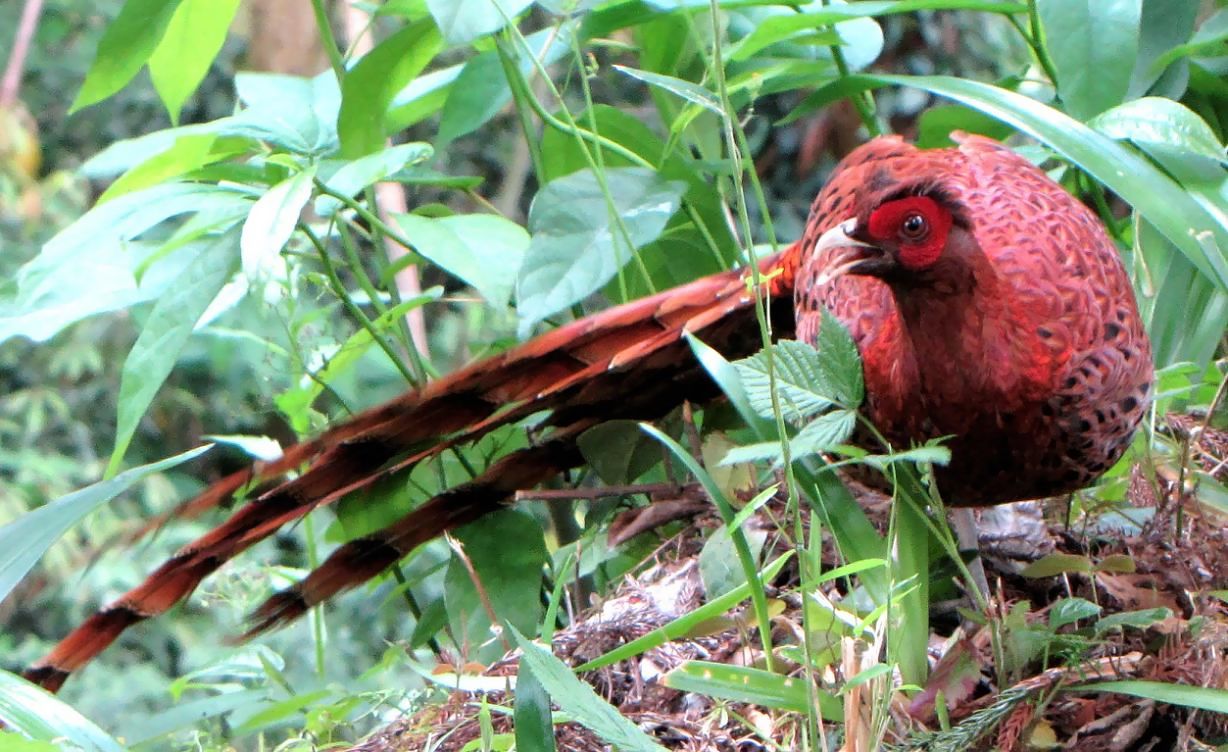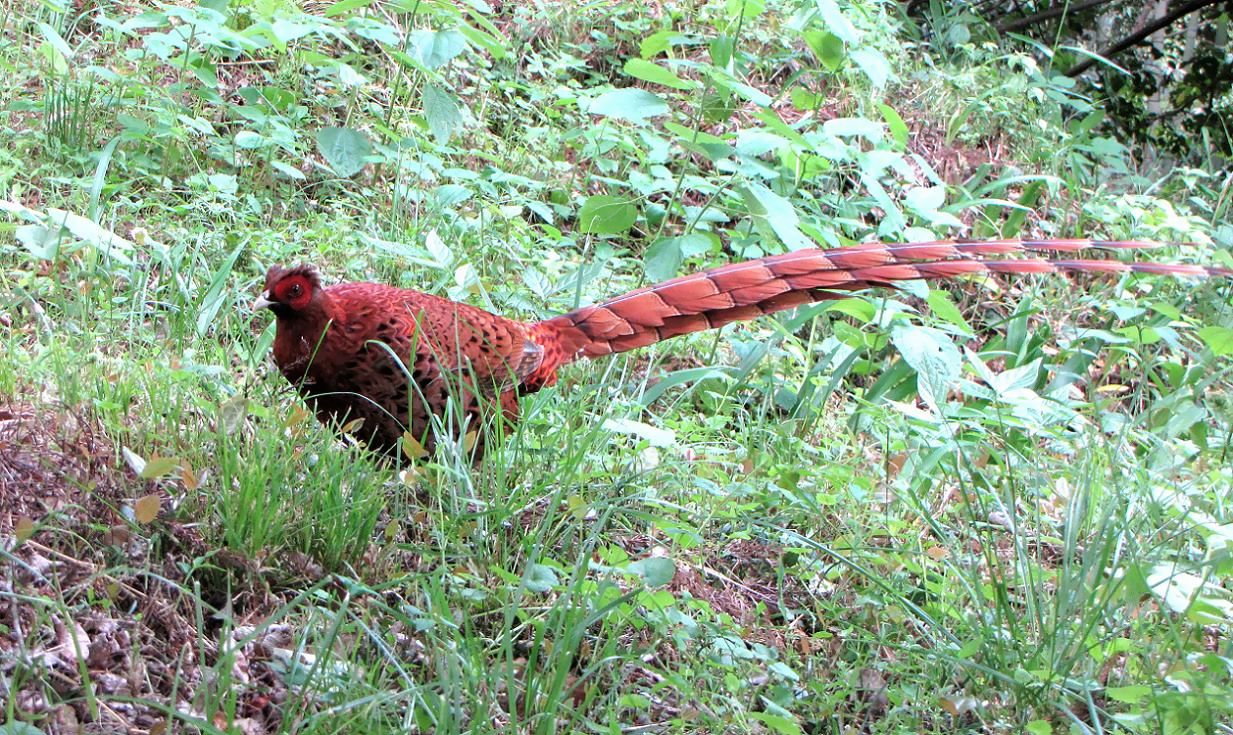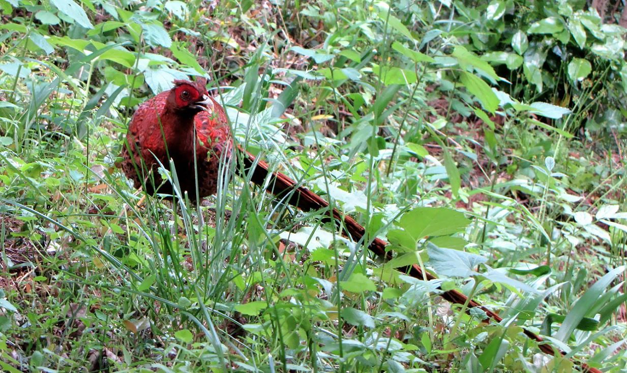 クククククックウクウクウ・・・と鳴いては若い葉っぱを食べて歩いています。ちゃんと「喰う喰う喰う」と言いながら葉っぱを食べるところなど、お行儀の良いヤマドリちゃんです。