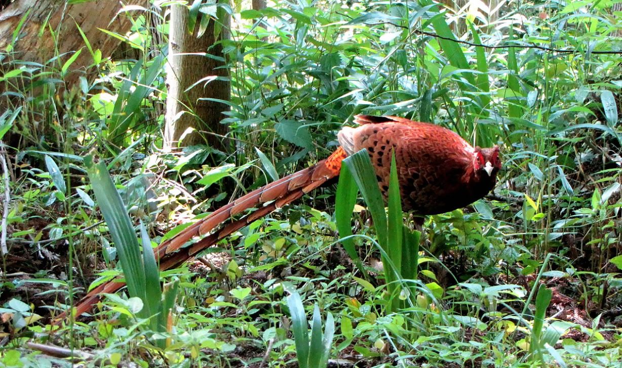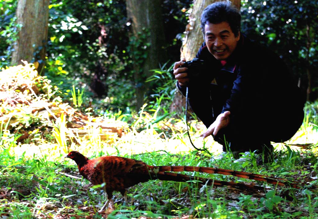 山から出ると迷彩服は脱ぎます。近くで待っているのはヤマドリです