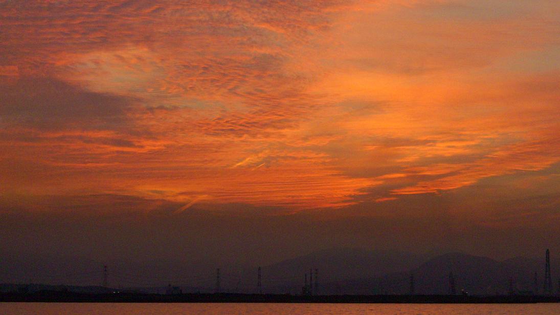 一文字でイルカを見た後、しばらくすると西の空が赤く染まり始めた。前日まで西高東低の気圧配置で風も強く、空気中のチリも少ない。