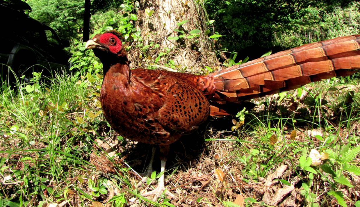 車に留まるヤマドリ