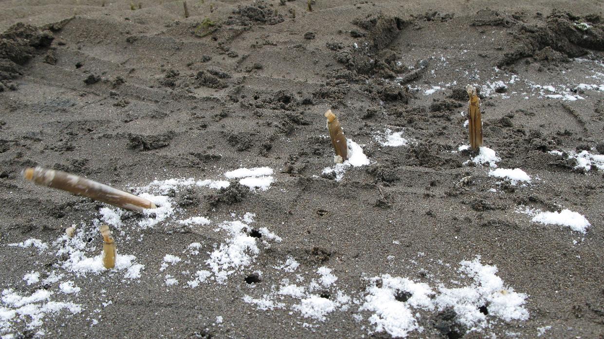 その後は宇佐市までマテガイ掘りに行っていました。3人でゆっくりと塩がなくなるまで掘って、5kgくらいの収穫です。