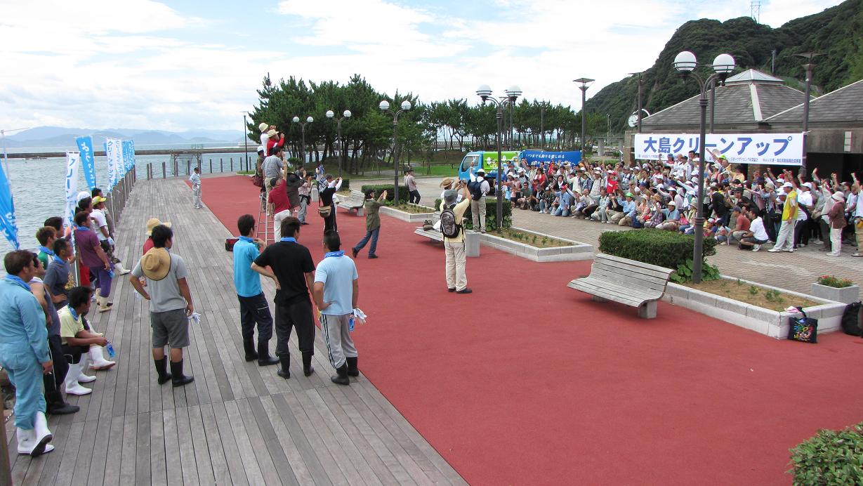 地元の人・釣人・ダイバーなどなど、福岡県内を中心に各地から有志が集まってきて、大島の西海岸などを中心に実施しました。私は飛び入りだったので、防波堤周辺で少しだけ加勢しました。