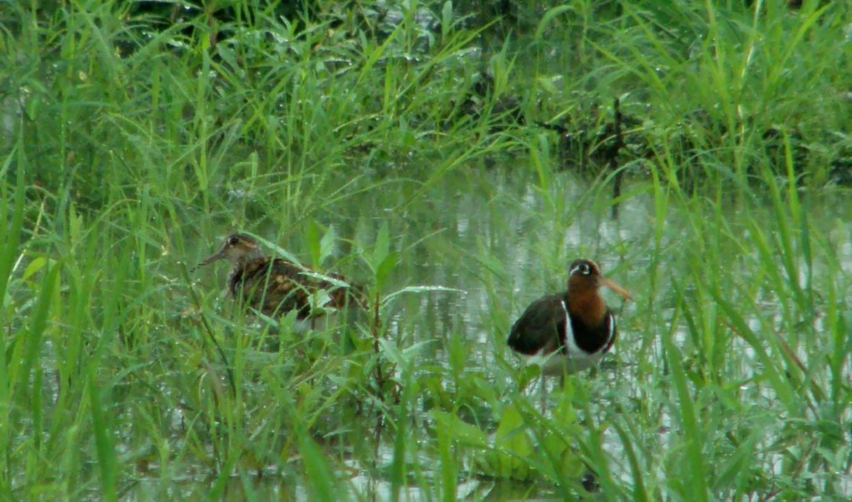 8月中旬に撮りました。左がオスで右がメス。鳥見仲間に教えてもらった先は、自宅から5分もかからない休耕田です。2年前に声を聞いたのは、この場所から3kmくらい上流の川でした。