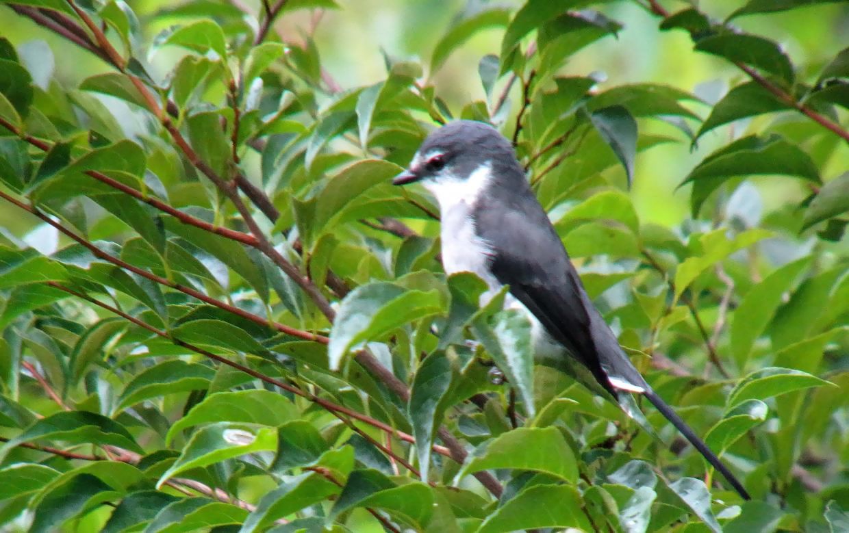 ガスが薄くなって曇り空の光量が足りない中、SS60分の1で手持ち撮影したリュウキュウサンショウクイ、ブレブレだけど可愛く撮れました。