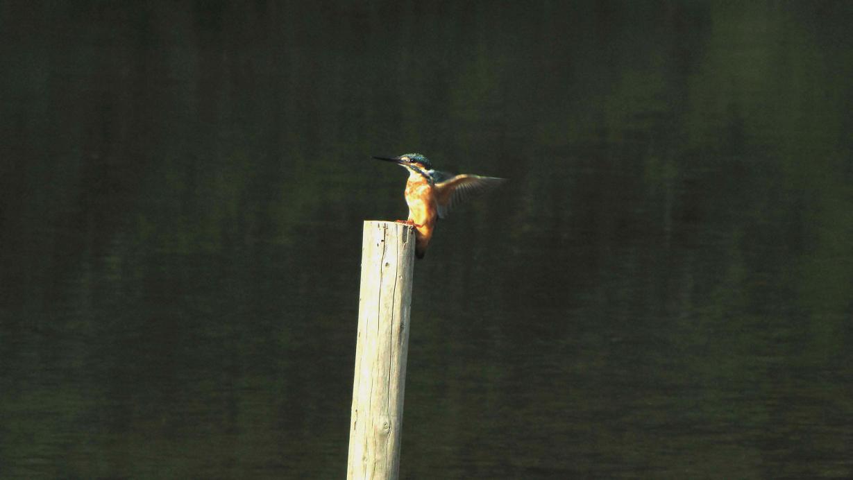 この杭を気に入っているヤマセミは、朝早くから観察していると、一日に一回は留まっている感じです。もちろん、カワセミも留まりますが、ヤマセミが見ている時に留まると、追い払われてしまいます。ヤマセミはかなりお気に入りみたいです。