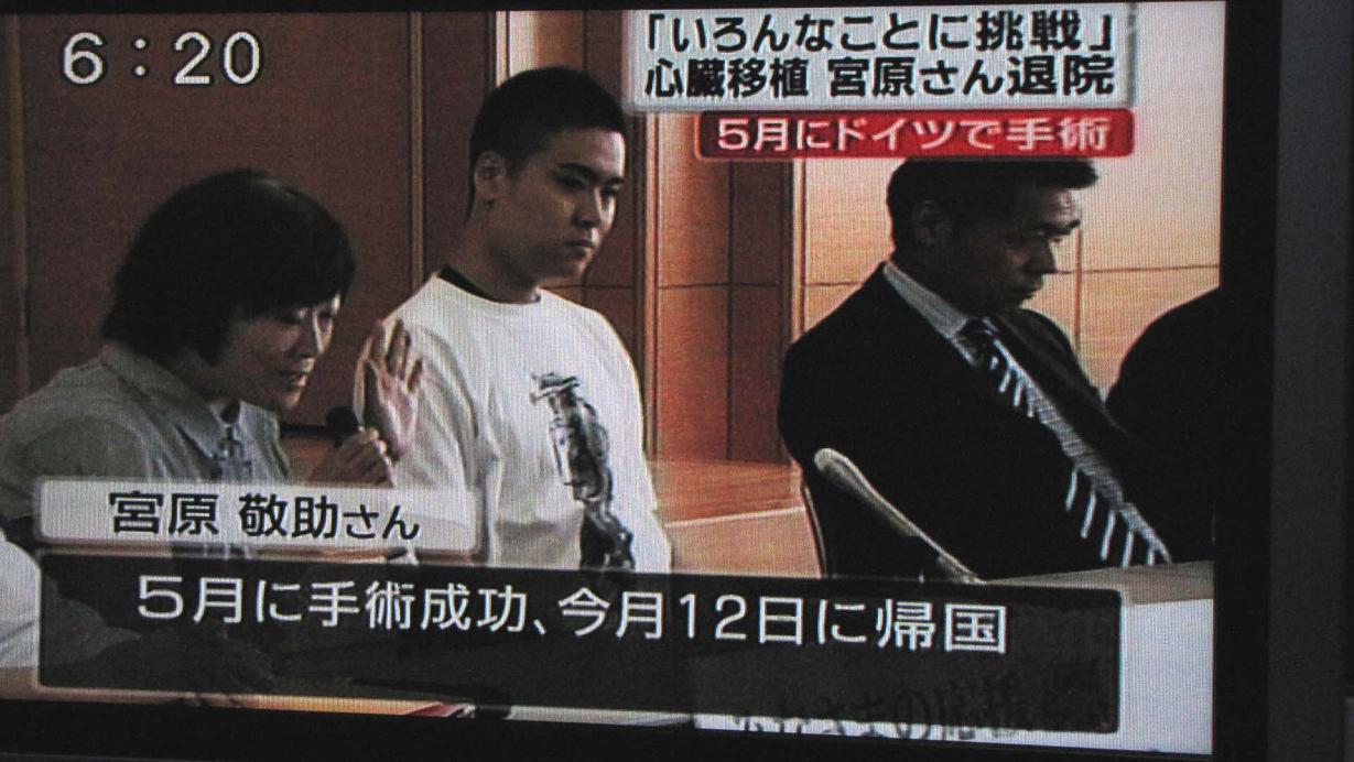 拡張型心筋症で心臓移植のため、ドイツに渡って治療していた敬助君が退院しました。今日の18時20分頃のTVで記者会見です。