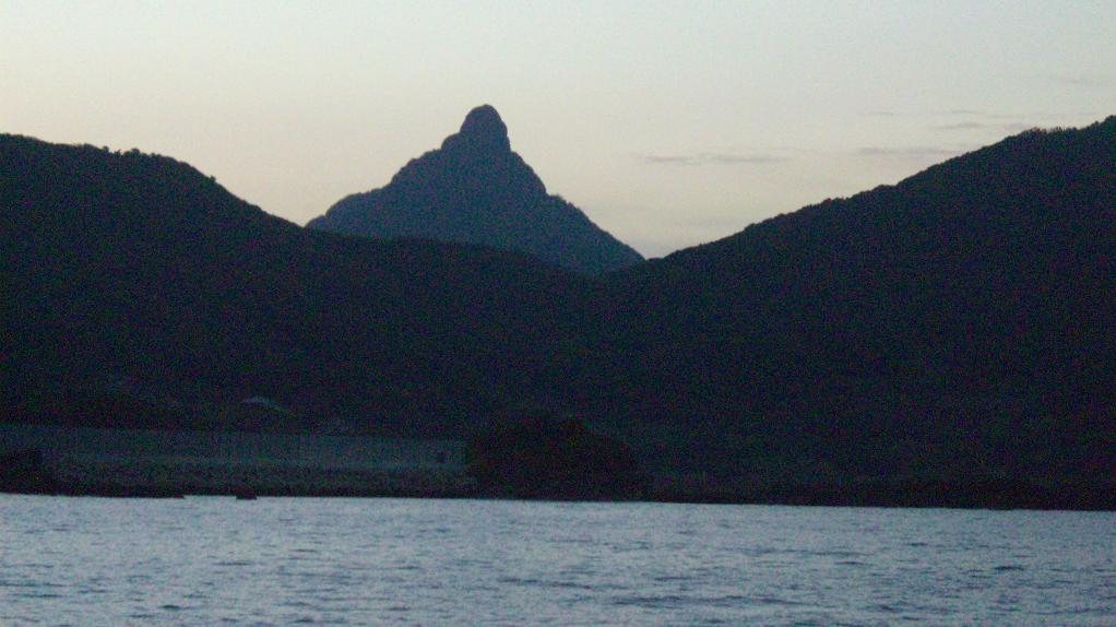 宮之浦の磯から港に戻る時に、頂上が岩の山を見る事が出来る。流れ星銀牙というイヌのマンガに出て来る、宿敵アカカブトの要塞に似ている。