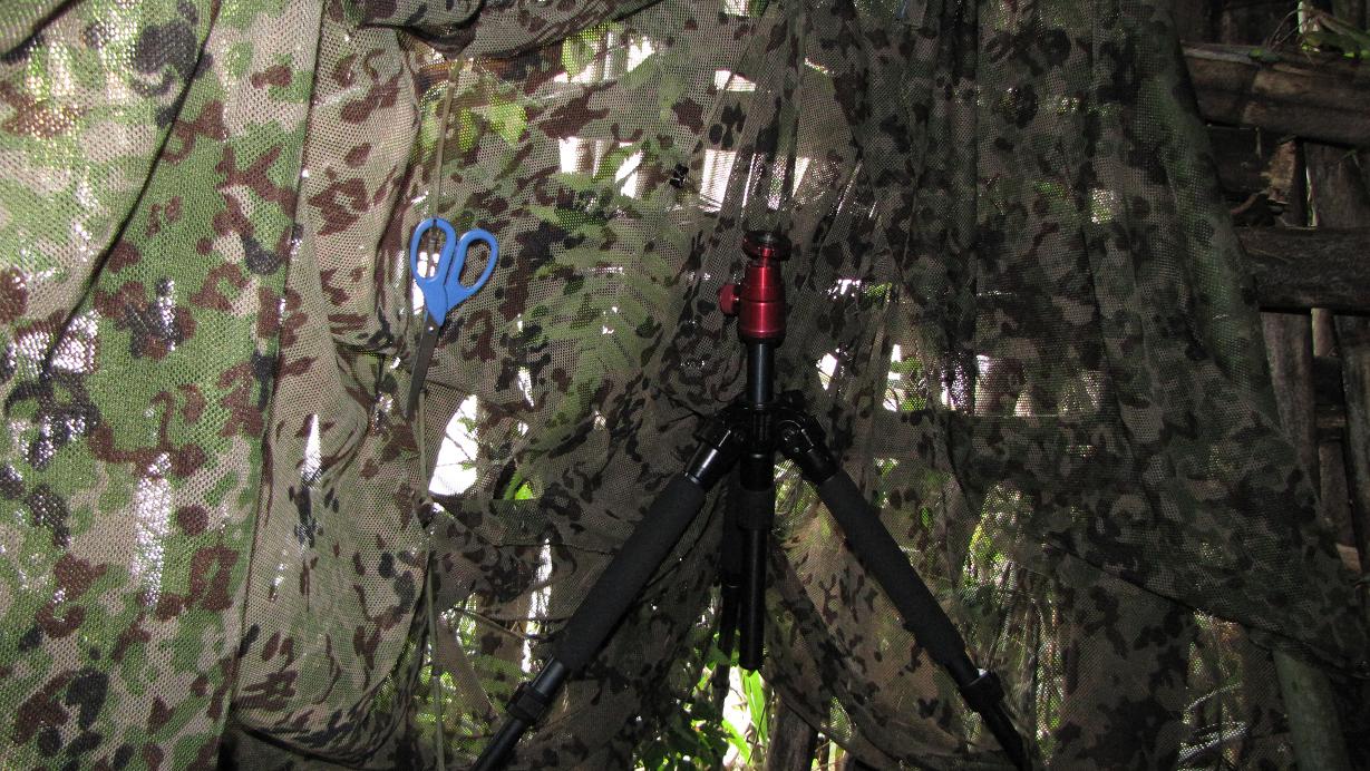 カモフラージュネットの前は、枯れた竹や草木で囲っています