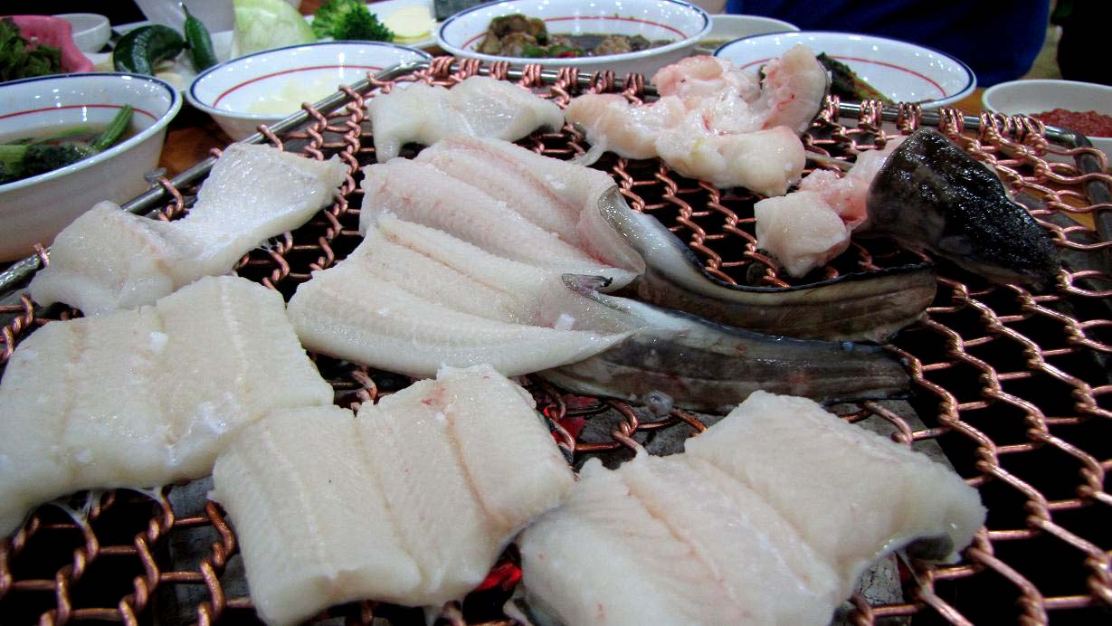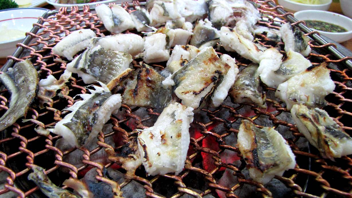 大きいアナゴです。側線に並んでいる白い斑点がほとんど見えなかったので、クロアナゴだと思います。臭みも骨ぼねしくもなく、ホクホクして本当に美味しいと感じました。30人くらいでベスト3のチームに、ご馳走になりました。