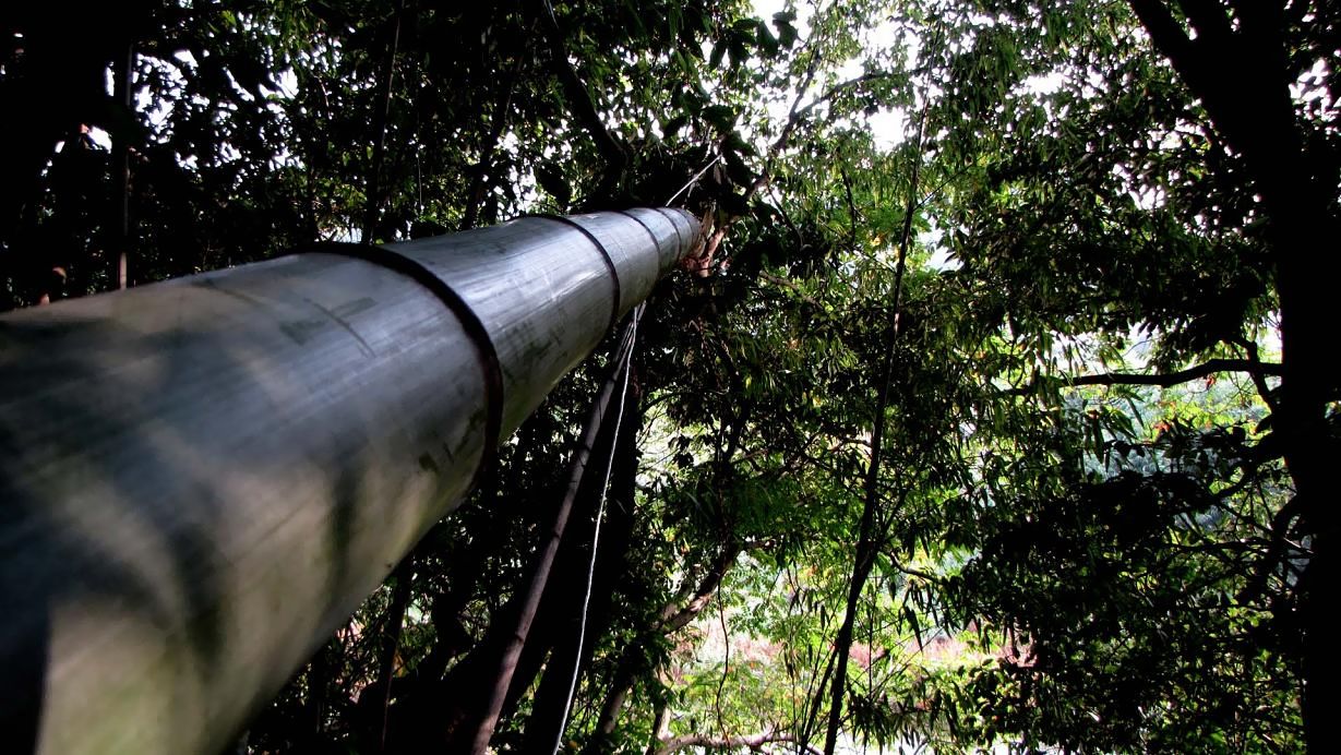 竹の先端には、腕ほどの太さはある樫の木の枝が1mほど。