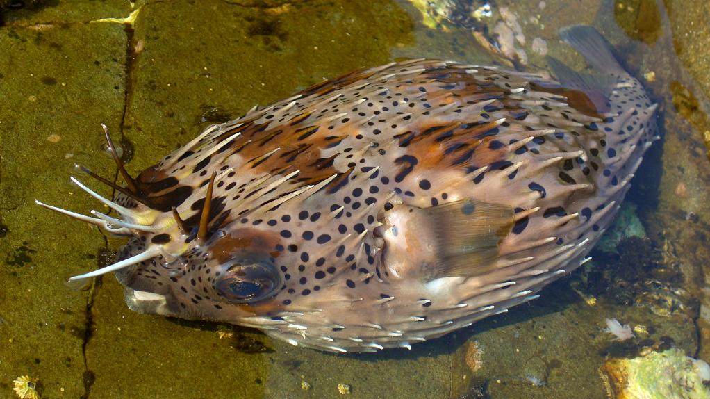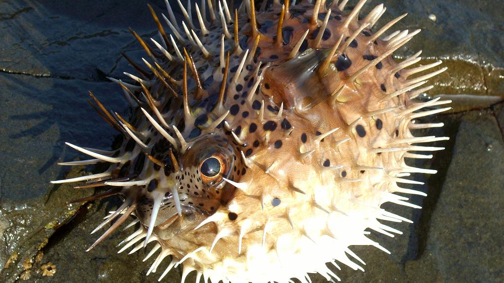 ハリセンボンは磯際を狙っている時に釣れる事が多い。彼らの捕食行動は、ゆっくりと動いてエサをついばむ様に喰っているので、アタリが出にくいのが特徴かな?昼でも釣れるし夜も釣れるので厄介なエサ盗りじゃ。