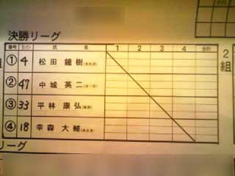 明日の決勝リーグを戦う人達です。各リーグの1位2名が決勝戦、2位2名が3位決定戦へとコマを進めます。