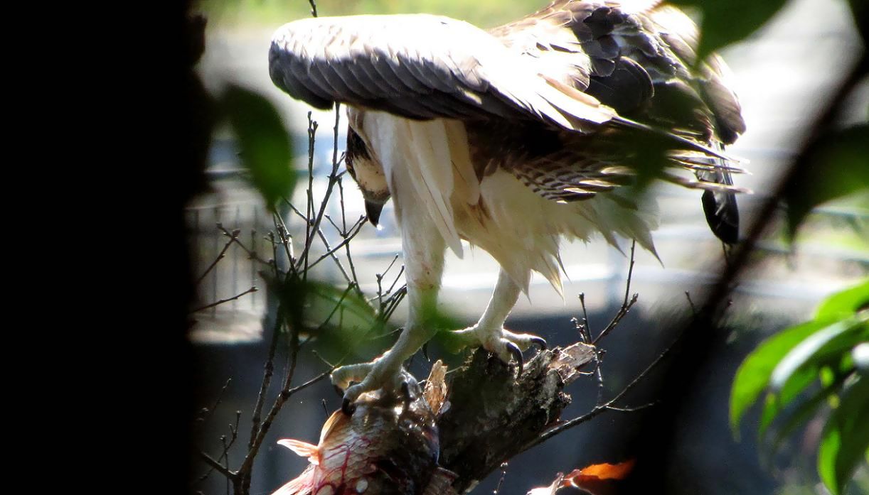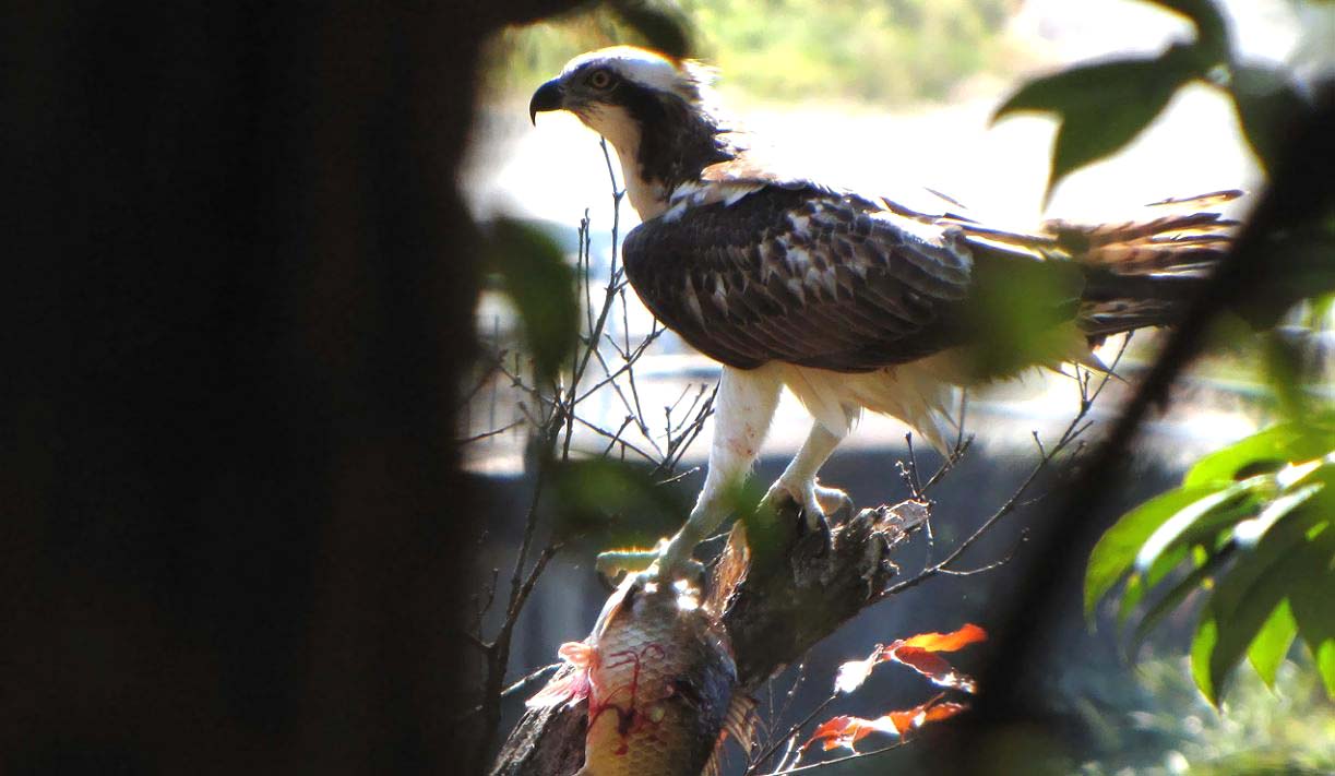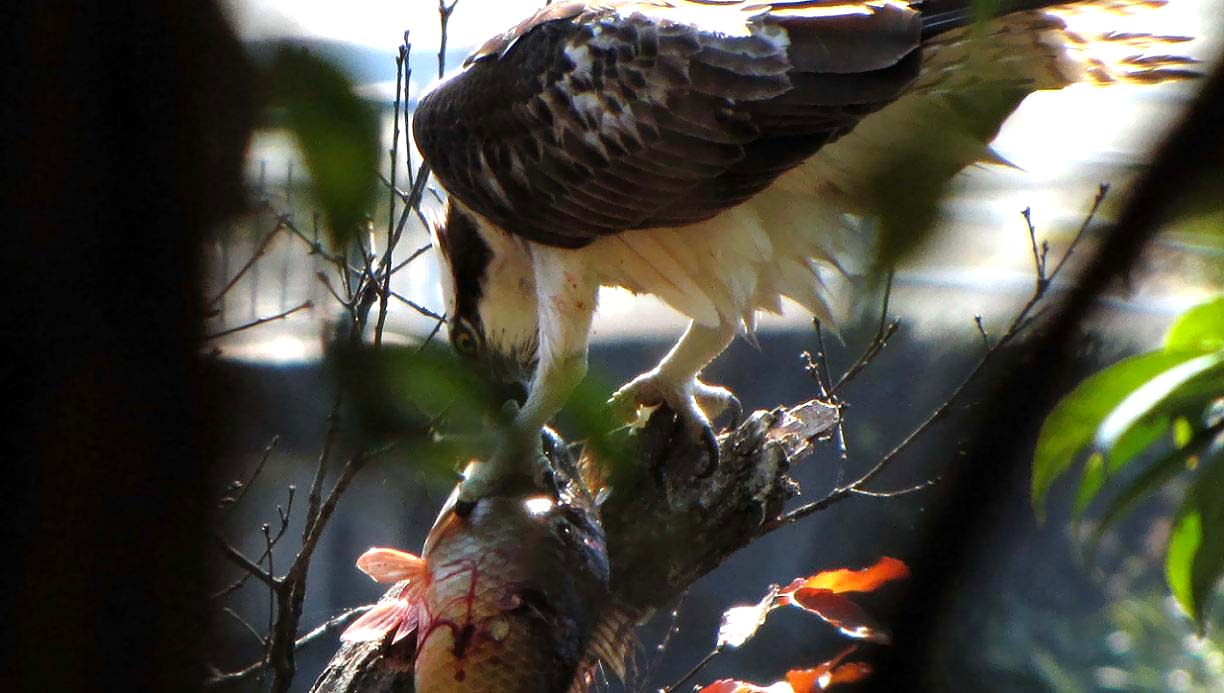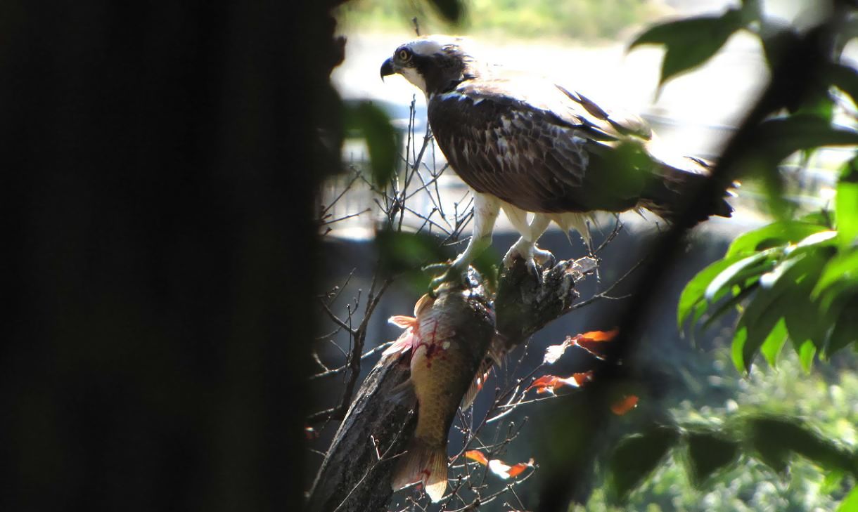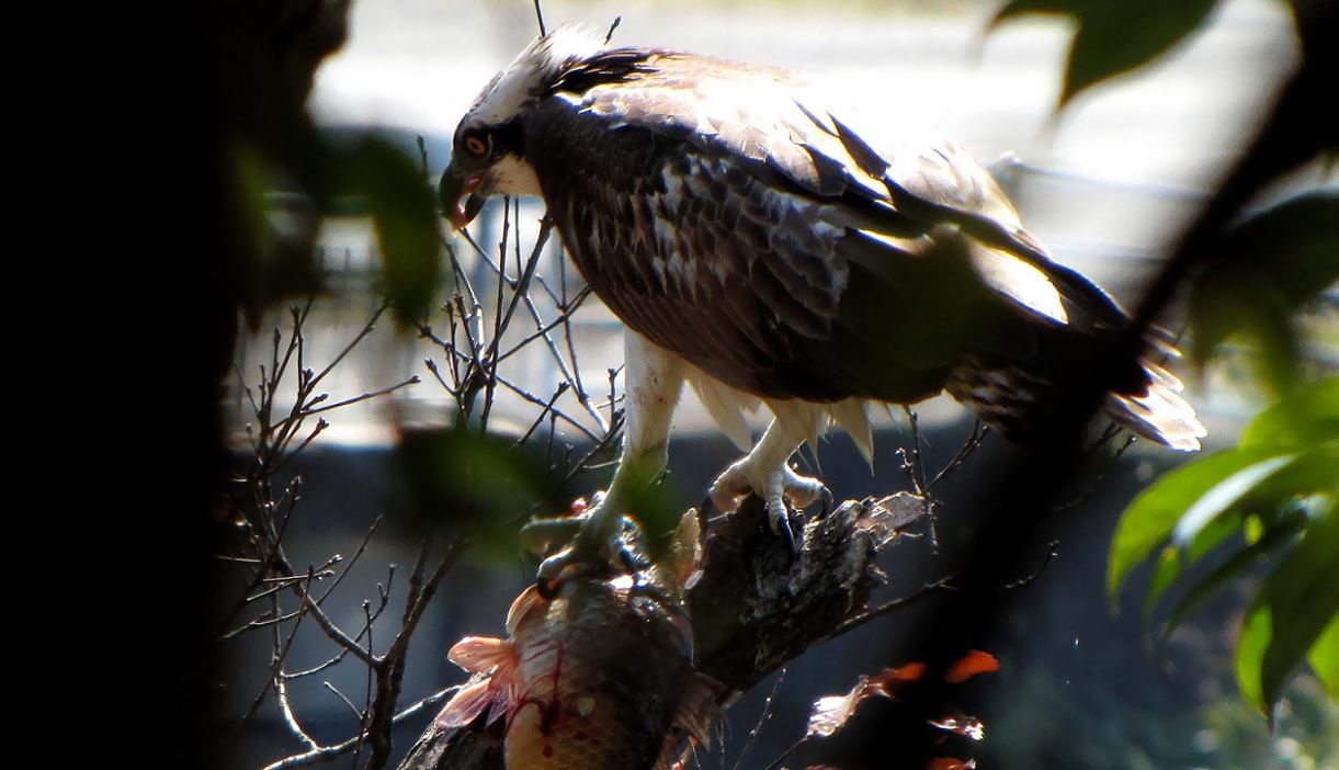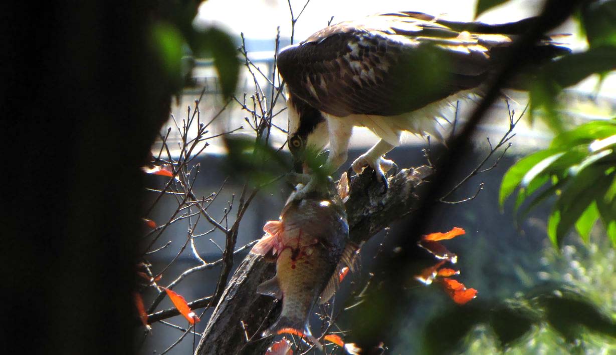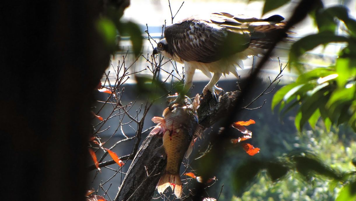 魚はフナ、30cm級の大型です。魚が大きく見えるのでミサゴはオス?