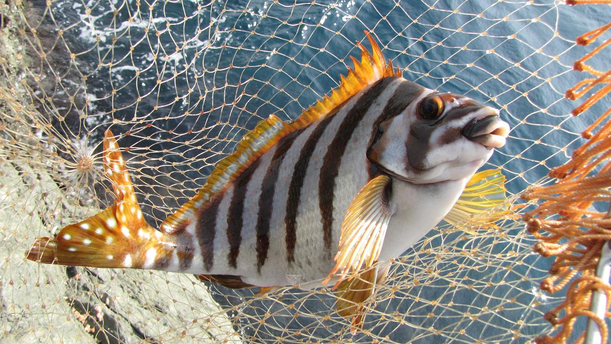 潮の動きが悪い時に良く釣れます。群れは作らないお魚さんで、斜めの縞と斑点がとても綺麗です。でも美味しいお魚さんではないのです。好きな人も居る様ですが、私的には嫌いな部類のお魚さん。