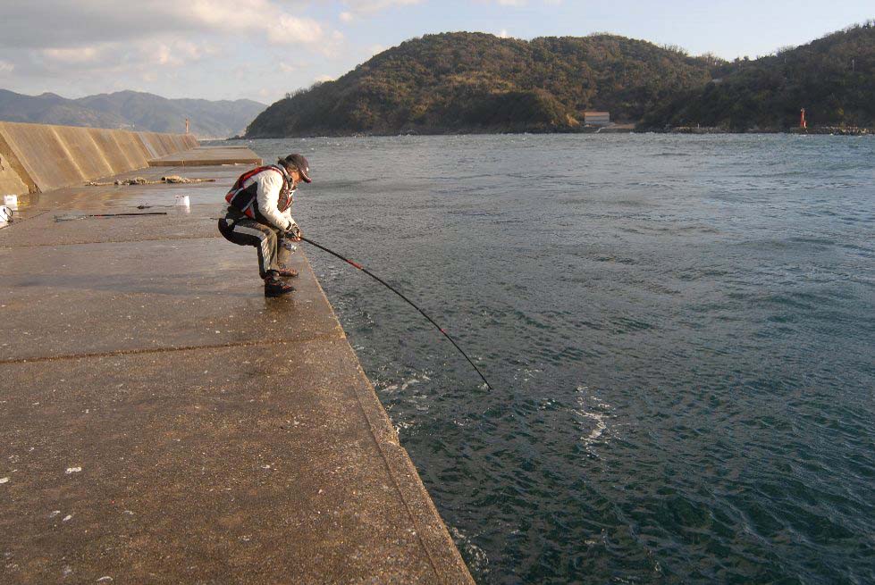 更に願った事は、車で誰でも行ける釣り場から、大型のカンダイを釣りたかったのです。でも、その様な場所での大人のカンダイ(8kg以上)は情報が少なく、立石名人を通じて地元の名手の意見に従い沼島で竿を振りました。