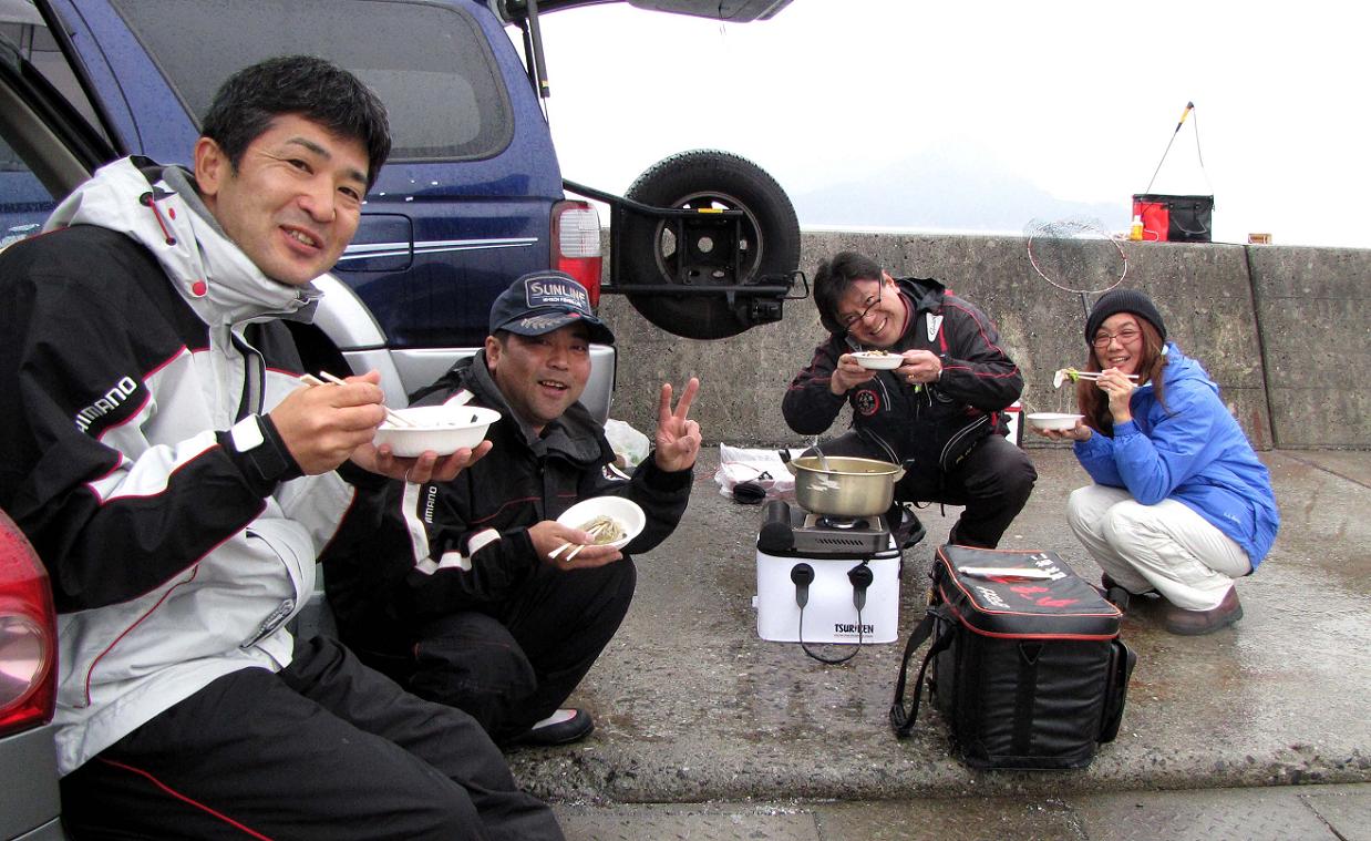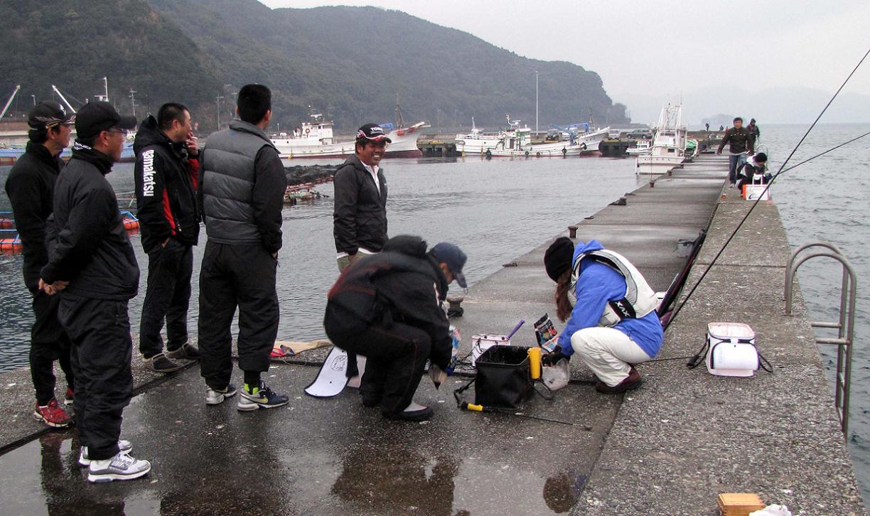 昨日・今日と二連荘のカンダイ狙いでしたが、3人は本気モードで一心不乱にマキエを打って、竿を振り続けました。それにしても寒いです。沖縄から来ているから、その寒さは私以上でしょうね。