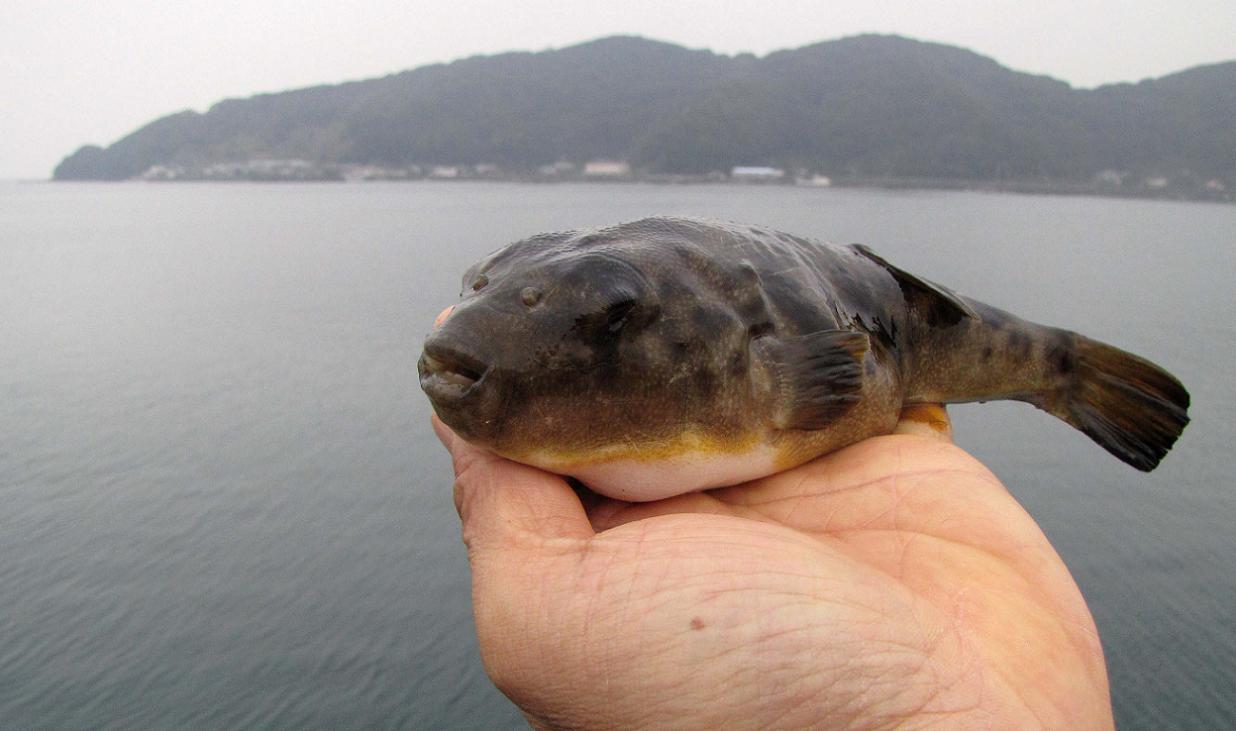 鶴見にはヒガンフグが多く、大事なアオイソメを盗ってしまいます