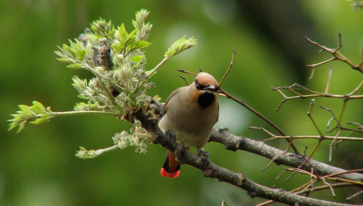 昨日、野鳥の会のHPで紹介されていて、今日の午後から行ってみると居ません。でも30分くらいすると彼らは来てくれて、センダンの若芽を食べ始めました。