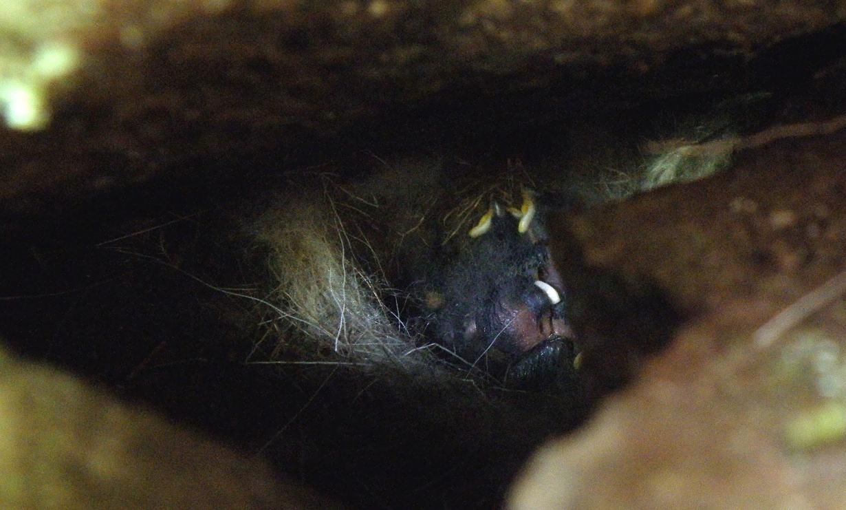 その巣から5mほど離れた、違う段の石垣の隙間に、シジュウカラガ出入りするのを更に確認、留守を狙って見に行くと、生後3~4日?くらいの可愛い雛が居ました。