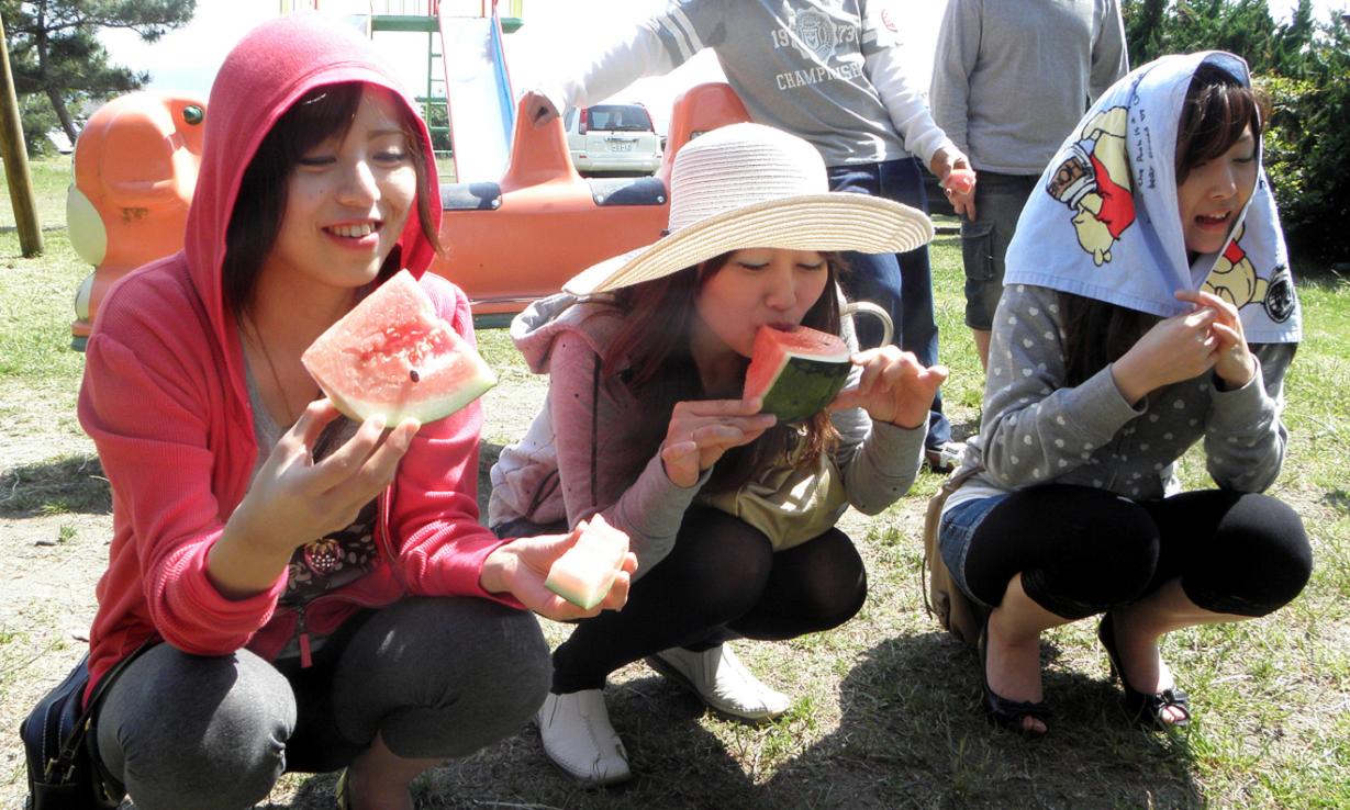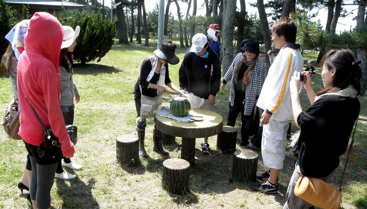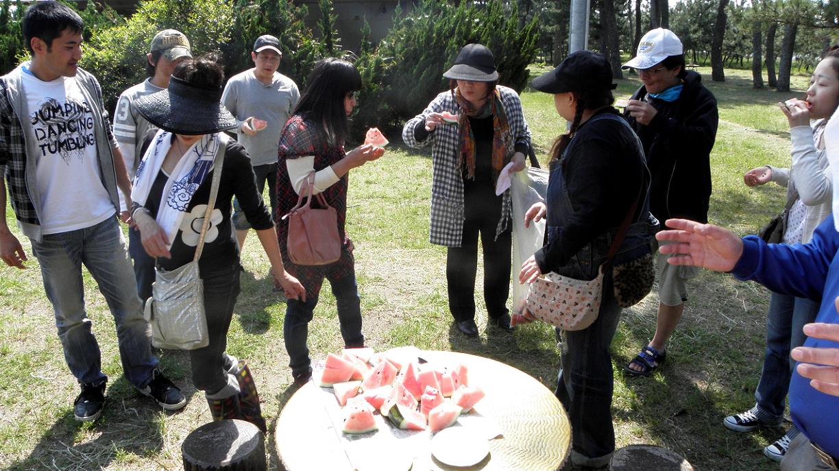 和間海岸の松林でスイカ。