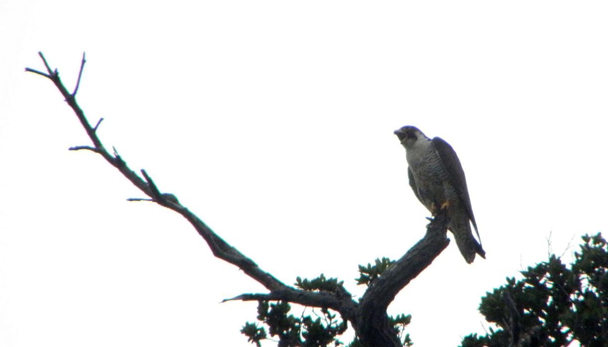 ハヤブサ、いつもの枝に留まって叫んでいます