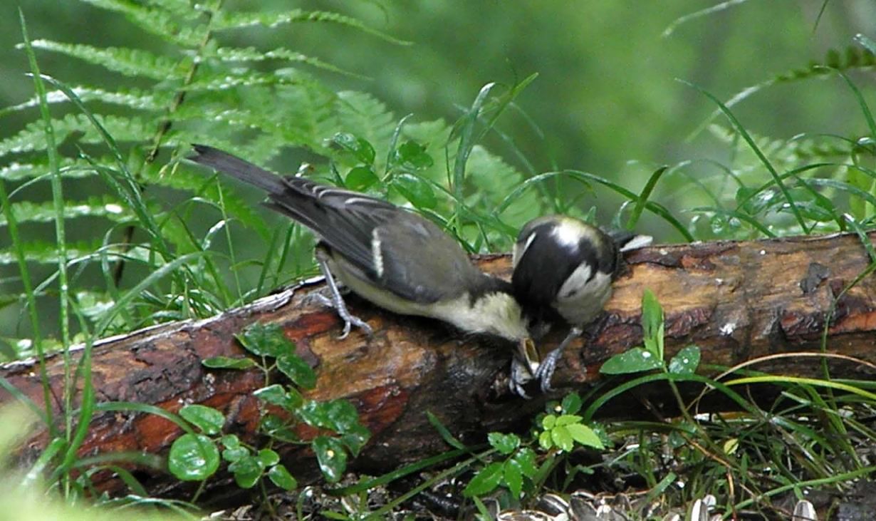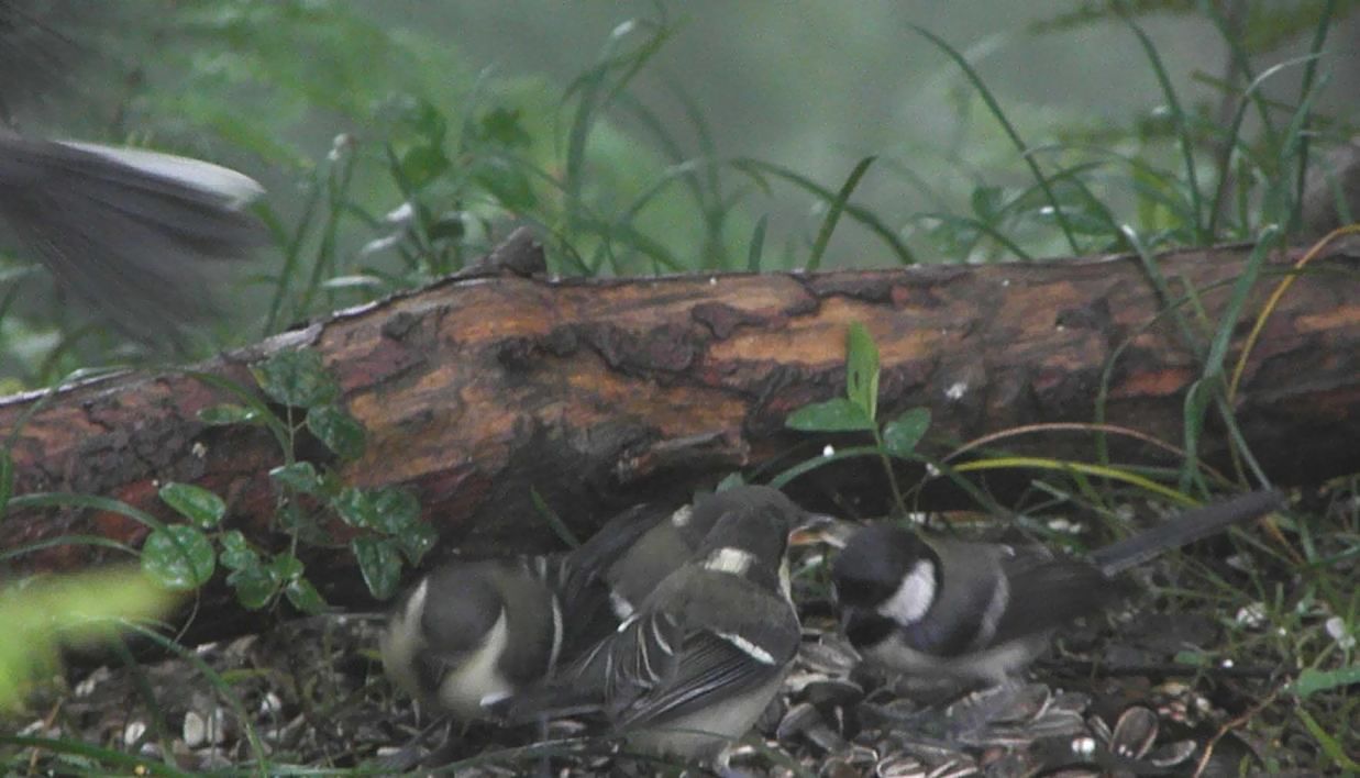 3羽の若は、ある程度一人立ちしていますが、ヒマワリの種をなかなか割ることが出来ません。1羽だけはお母さんから片時も離れず、鳴き喚きながら付きまとい、エサをオネダリしています。今回はお父さんは単独で一回だけ餌場に来ましたが、後は来ていません。