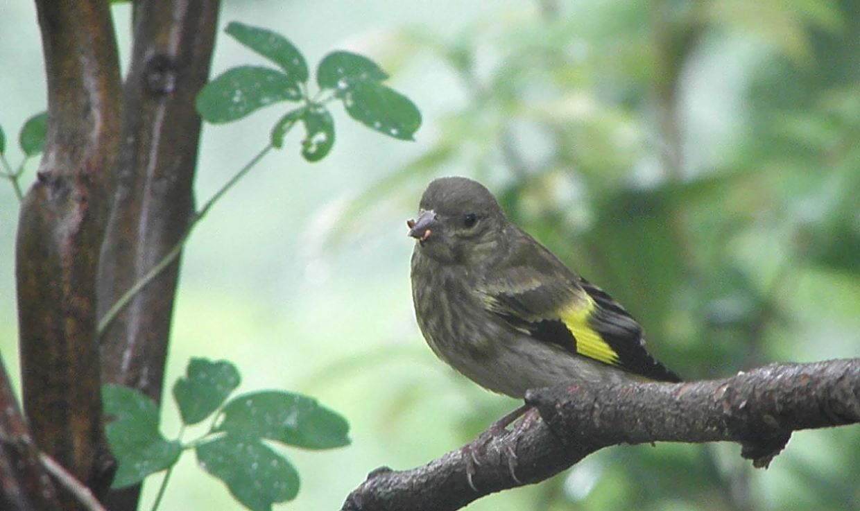 騒動を見守るカワラヒワの若