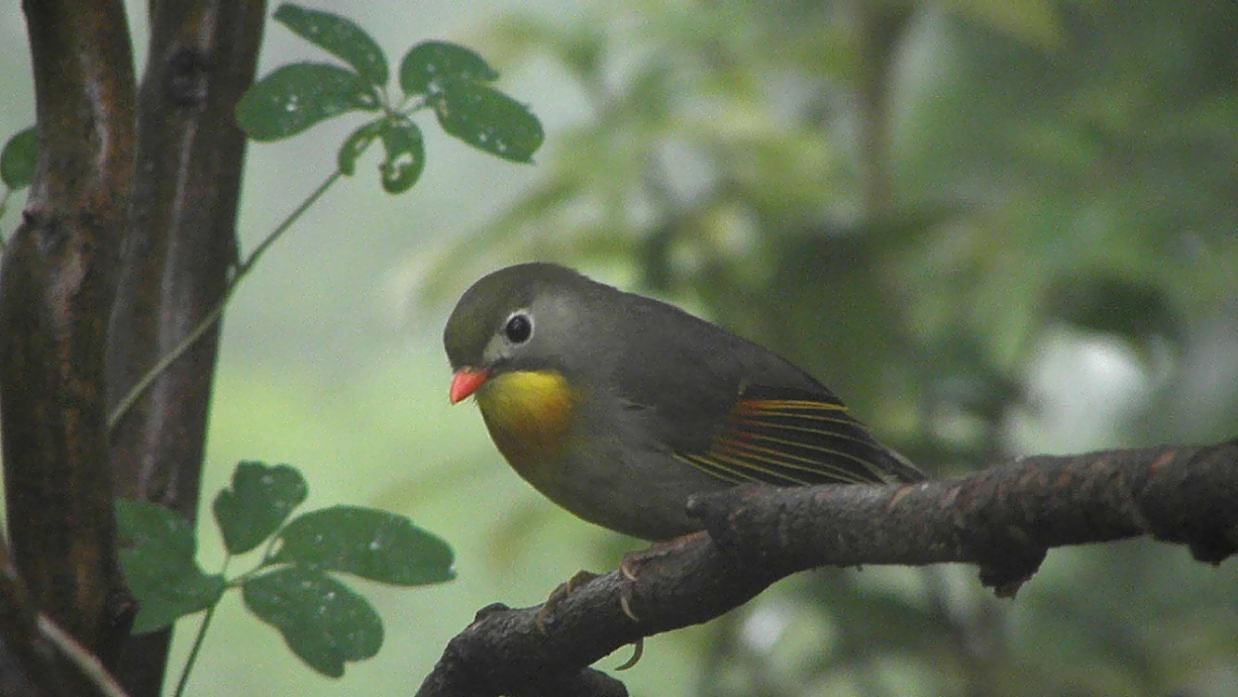 何事か偵察に来たソウシチョウのメス