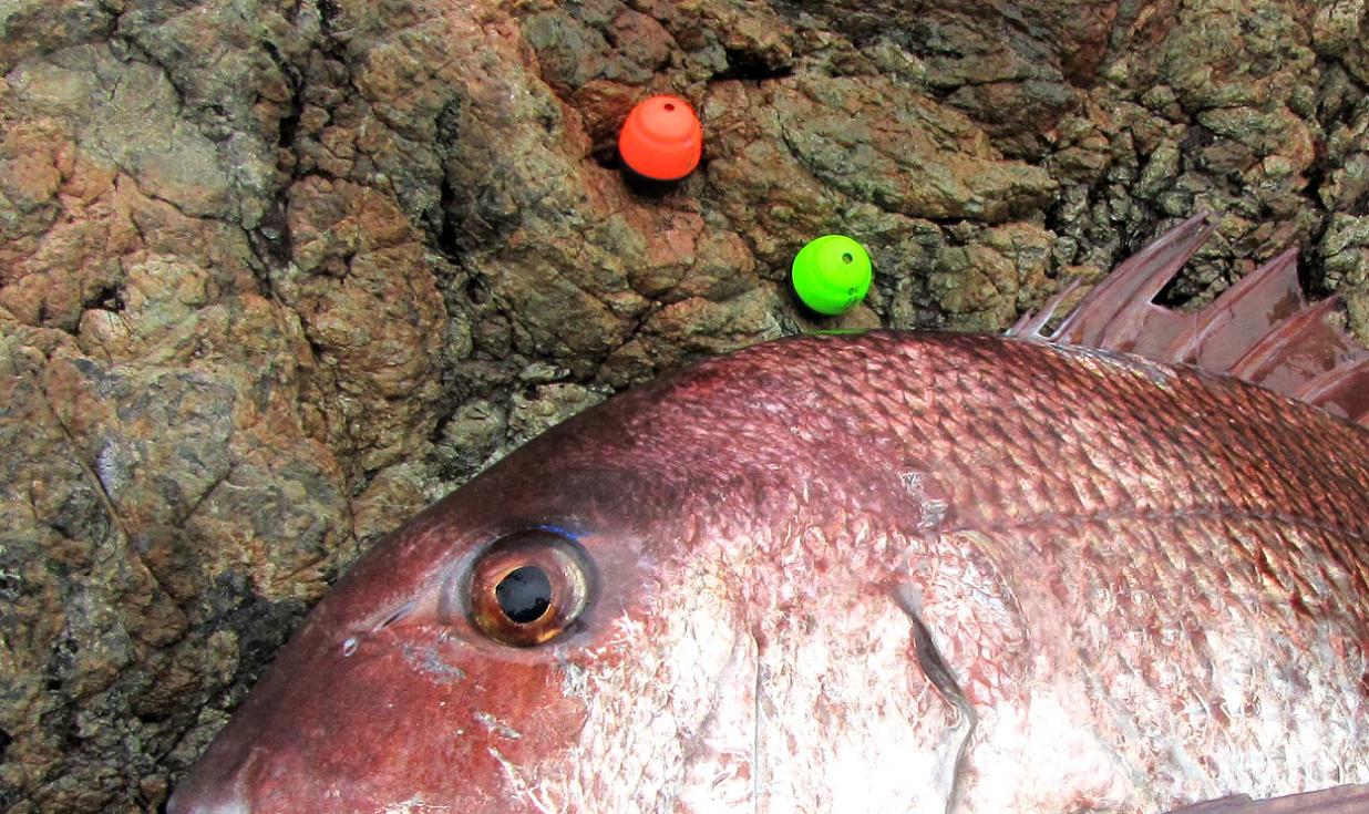 1000釣法仕掛けに、ゴム張りガン玉5号を取り付けて流したものの、仕掛けの入り方が悪い感じです。二投目は5号のゴム張りガン玉を1個追加しての投入です。