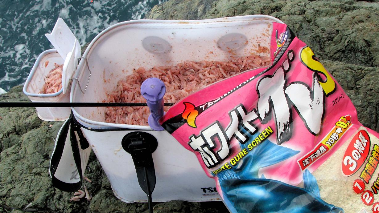 オキアミ6kg(少し水を切る)に対してホワイトグレ1袋、抜群です