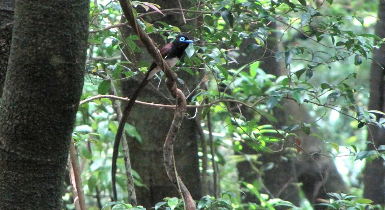 昨年繁殖を観察したカップルのオスが、今年も来てくれています。このオスの鳴き声はとても特徴があるので、他のサンコウチョウとは容易に区別出来るのです。