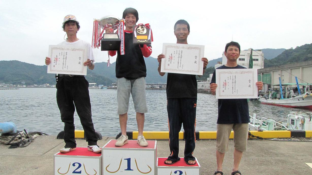 決勝戦に残った4人は若手2名・中堅1名・オヤジ1名でした。朝から3回の試合を勝ち抜いて、更にこの場所で竿を振るのは至難の技。